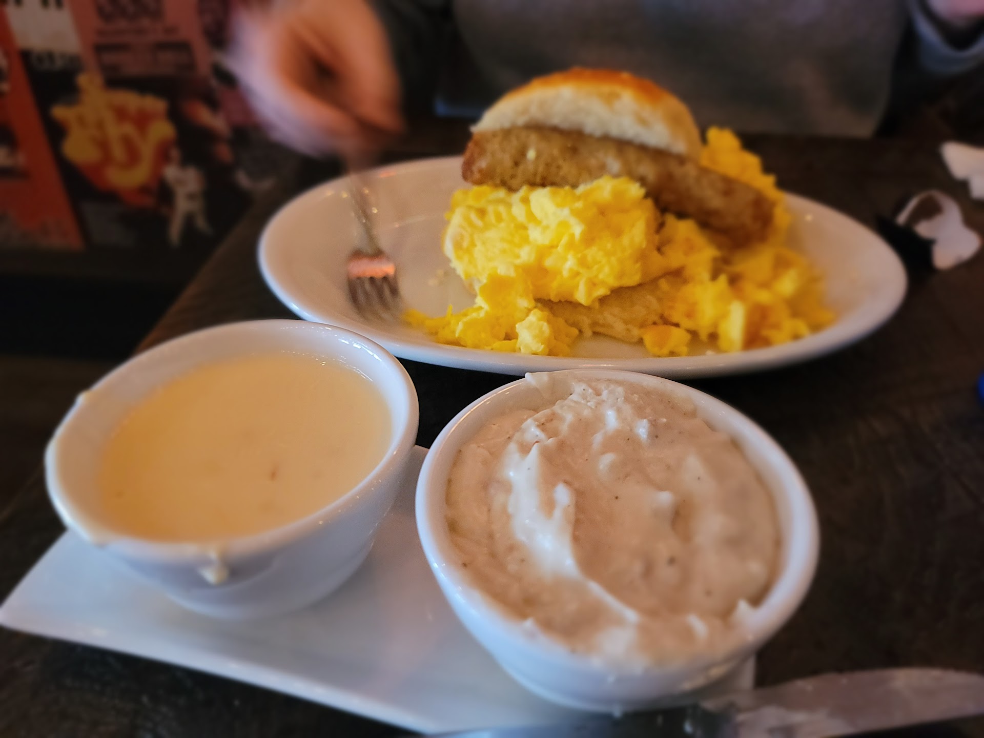 My first time at Mitzi's. This is a restaurant that prides itself on sausages. I am a breakfast guy so that's what I tried. I had the Talking Hash. It is a creamy mound of hash browns that has a cruch on the exterior. It is topped with cheddar cheese sauce. I was worried that it would be dumped over it and ruin it but it is a careful drizzle. A sunny side egg comes on top and I was able to choose my sausage. I chose the Jalepeno Cheddar sausage. It was a little spicer than what you buy at the store which I enjoyed. I did pay extra for bell peppers and onions but it was worth it. I broke the egg yolk and let it douce the hash browns. It was wonderful. My lady had the Sausage on Mars. It's a biscuit topped with sausage gravy and served with a breakfast sausage. She loved hown light and fluffy the biscuit was to counter the heavier gravy. The sausage was scrumptious. I have to try more menu items before I give it 5 stars but we will be back. Probably not for breakfast as this place lets you order sausages that are beef, pork, or vegan with all kinds of...