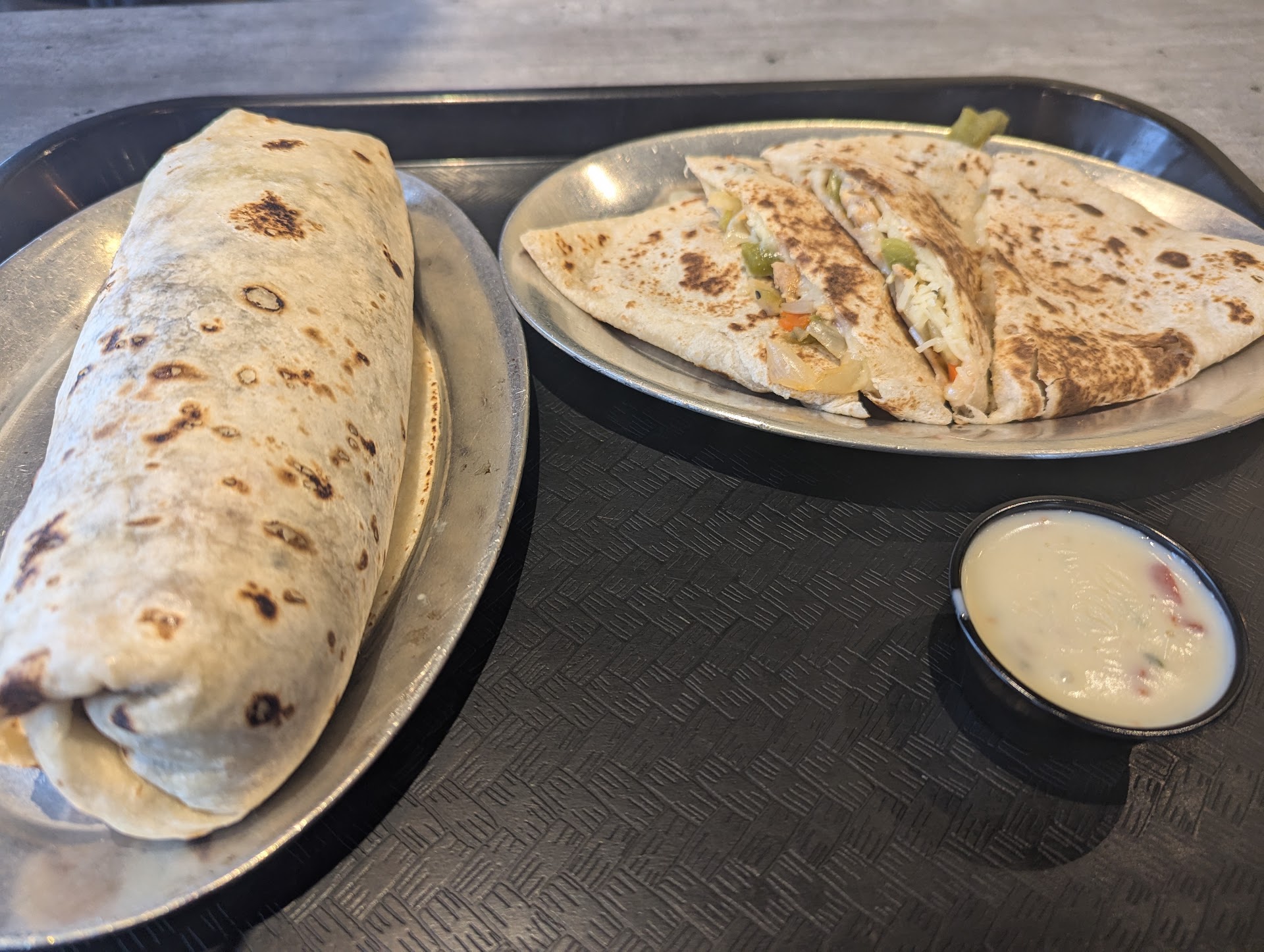 We ordered To-Go. The ingredients (rice, beans, veggies and salsa) were freshly prepared and tasted good. The Queso also tasted great. But, we were disappointed with the quantity. The portion size was less. We were charged extra for the Queso, Guacamole and cheese, and they were not sufficient enough. The packing was good. Staff was friendly. Service was good.