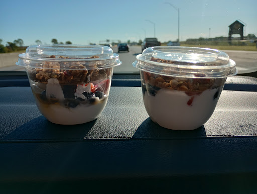Oh and if you can't tell in the picture, one yogurt has less than half of what the other one has. So did we get extra? What if we ordered just one? Would we get the pathetic amount? That doesn't seem fair.