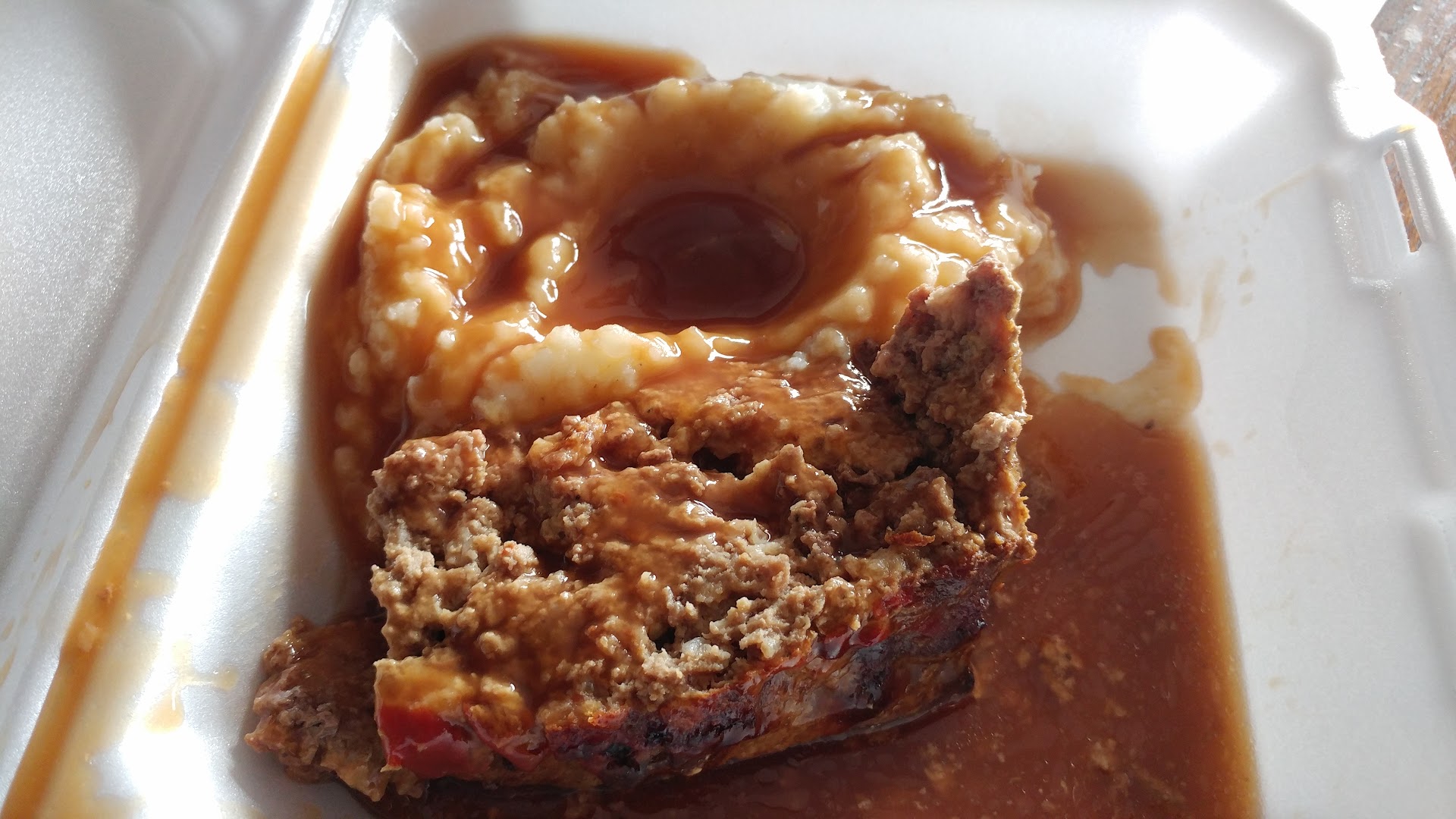 Today I tried the Friday Special and while the picture doesn't look that appetizing, especially since it is in a to-go container, don't be mistaken this meatloaf is awesome. For 9 bucks you this thick cut of meatloaf, a big mound of mashed potatoes smothered in beef gravy and a soda. It was a large portion and now I am ready for a nap. It was just just good comfort food.