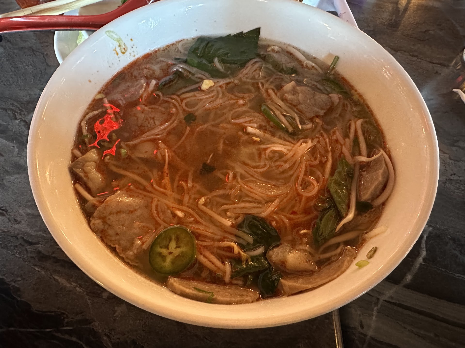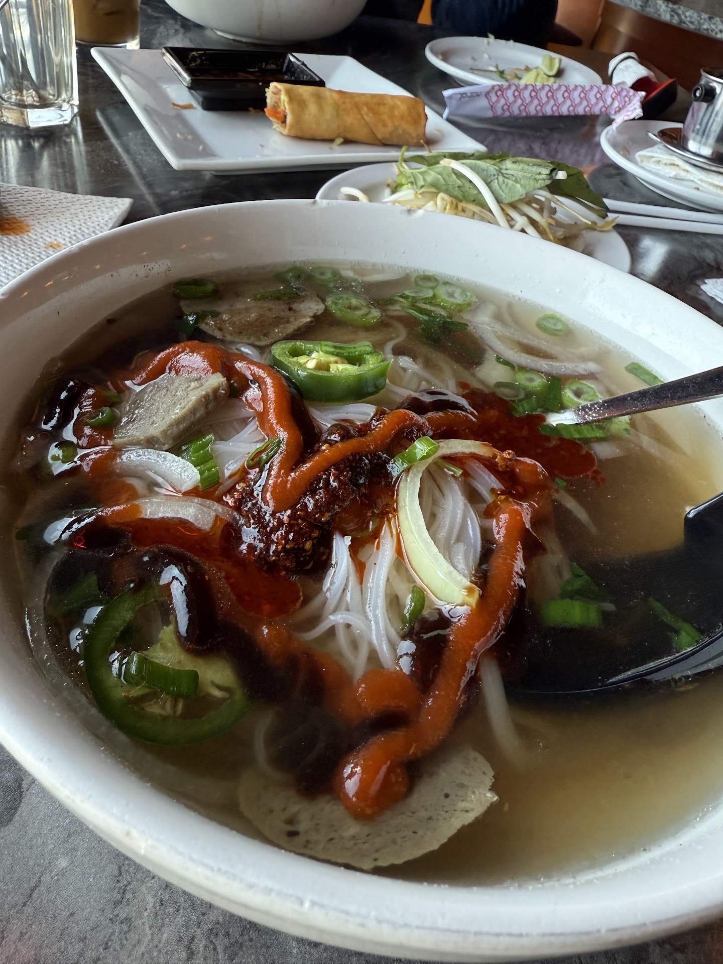 Ā Ā Ā Read moreThe last two times I have come here the service has been absolutely TERRIBLE. I contribute that to the fact that there are CHILDREN running the place. on 2/4/24 I came in for a late lunch with a friend and her son. We ordered spring rolls for an appetizer, I asked them to bring peanut sauce with them. I then had to ask the kid 3 more times after our rolls came out for the said peanut sauce. I had also overheard table next to us ask him for their side plates of bean sprouts, etc for their Pho. Instead of getting the customers their requested items, this kid SITS DOWN AT A TABLE AND STARTS EATING HIS OWN BOWL OF PHO!! Slurping noodles and not a care in the world that he had several upset customers. I took pictures as proof. I had ordered the steak and meatball pho and requested the steak rare on the side. He looked at me like I was requesting the craziest thing he had ever heard. When it came out there were no meatballs and the steak was in the broth, not on the side like I had requested. I was charged extra on my receipt to take it back and brought out the way I had requested (I order it that way every single time I have been here and never charged extra for it)