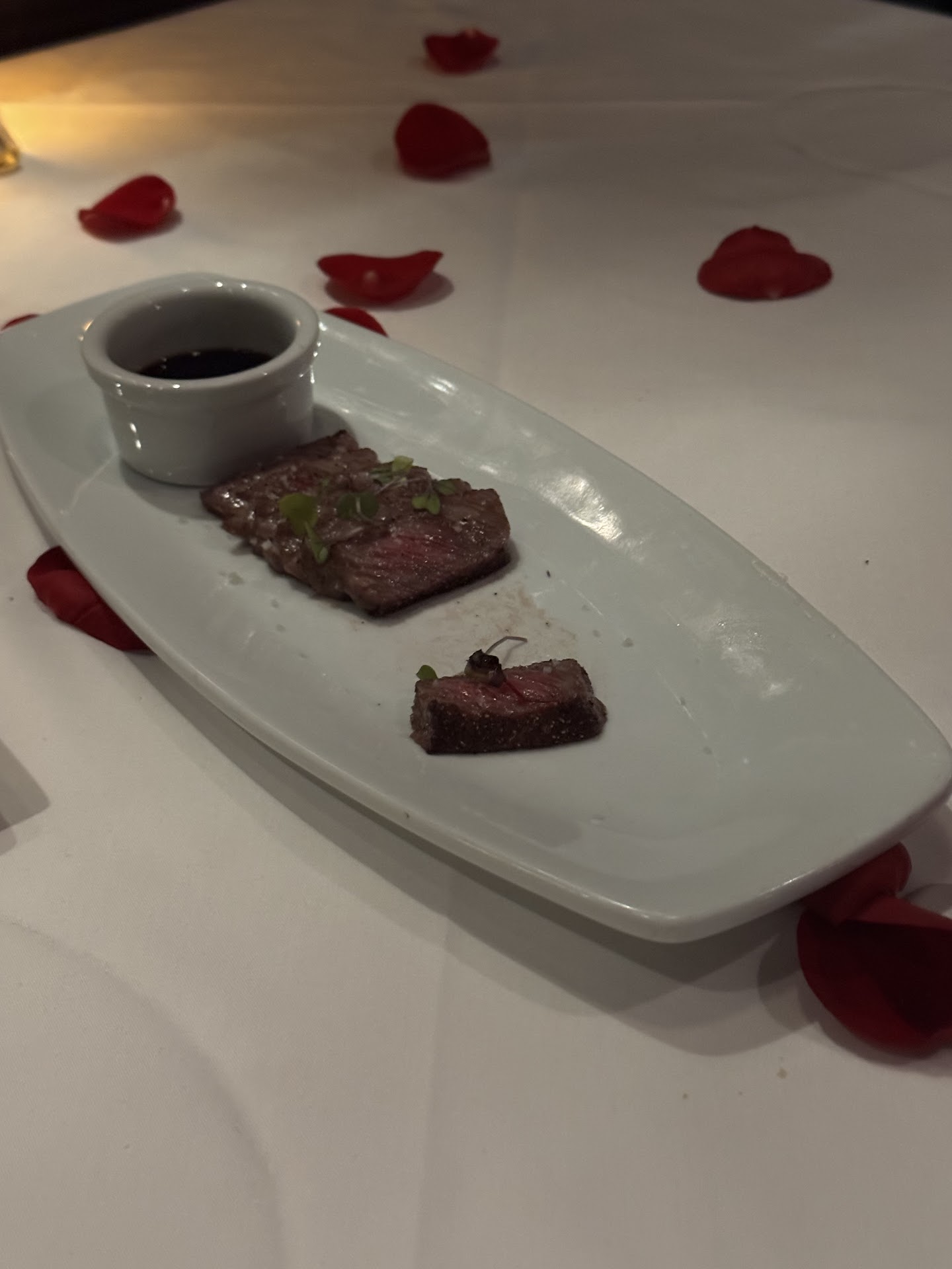 Read moreA+++++ (5 Star)!!! I recently contacted the restaurant stating that I would like to take my now fiance to dinner there so I could propose and I wanted to make it the most special night ever for her. They put me in contact with Johnny K, there and he took care of me. Johnny came in on his day off to make sure it was all taken care of. He organized with the staff for an amazing meal as well as the best hospitality possible. He reserved booth #17 for us which was more private yet public so I could make the proposal when the time was right. He already had discussed how the event was going to go for me and how we would end the night. We when we arrived our table was completely covered in rose petals. We were celebrating one year of being together yet my fiance had no idea of what was coming. I began the night with a gift necklace to throw her off as to think nothing more was happening that night. She was very inquisitive also of how I knew Johnny so he helped me find something we both had in common to strafe her off of the investigative path. We started the night coming in with some wonderful appetizers of lobster bites and Wagyu with soy sauce. We then proceeded with two different types of salads before our dinner of an amazing Tomahawk steak shared between myself and my fiance with some amazing side to go with it. We had planned at 8:30 for her mother to show up also as a surprise so she could watch the event happen. Her mom was exactly on time, and the staff positioned her so that my fiance would not see her mother during the proposal. Johnny worked with the sous-chef to prepare an amazing dessert board with several options (this is not on the menu), and the ring was in its box centered on the board. He and several staff members recorded video as the brought the tray out and as I sat there with her she explored the wonderful dessert options that were presented on the tray and had no clue the ring box was in the center. Instantly she froze and opened the box, I pulled her out of the booth, went to my knee and proposed to her. She said yes, and the whole restaurant cheered; I instantly grabbed her and picked her up and kissed her and they cheered even louder for us. Such an amazing and magical moment for the both of us and I truly believe it couldn't have happened without Johnny being a part of it. His communication, friendliness, creativeness, and eagerness to make this moment amazing for my finance was beyond compare. I would highly recommend him to anyone for planning any special event. If the restaurant is reading this, this man truly deserves a raise!!! You have an employee that cares for his customers and goes above and beyond what can ever be imagined. You, no Johnny has definitely earned continued business from us and new business from many of my co-workers and friends. Thank you again Johnny and Ruth's Chris for making it the best moment...