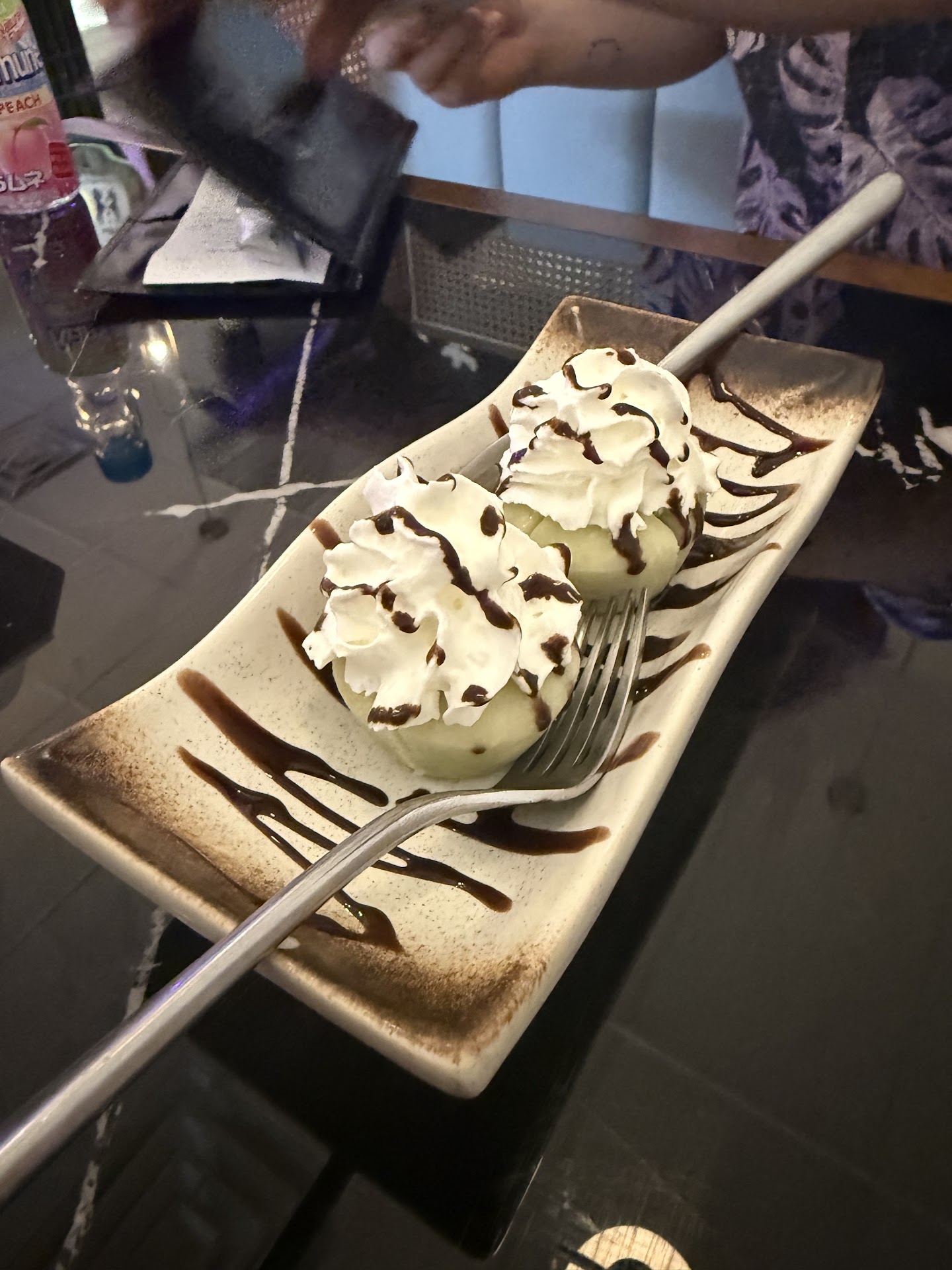 And, as the meal finished, they brought out tempura fried cheesecake for my nephew and I to share, while they sang.