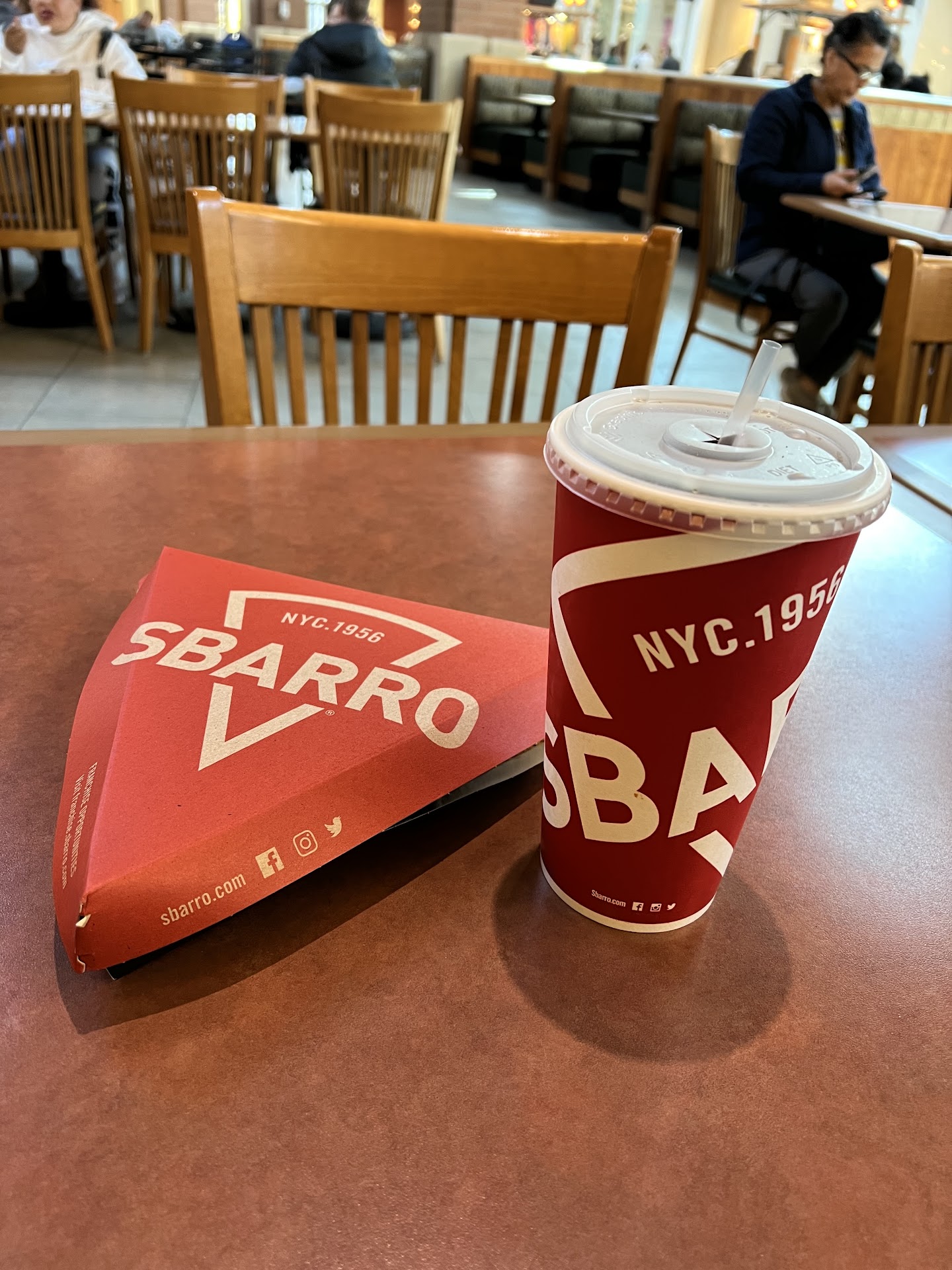 Read moreI had no choice but to lodge a complaint with corporate following a very bad experience here leading to what I believe to be intentional food poisoning by the staff. The wait staff barely spoke english, made a mistake on the order and when I requested rectification kitchen staff came out to give me the stinkeye. That night I had the worst food poisoning of my life and am certain the 2 are linked. In addition the food was severely overpriced (over 35$ for 3 slices of pizza, 2 fountain drinks and 6 wings this is a food court not a sit down restaurant lets be real here) and anything but fresh. The pizza was just reheated slices that had been sitting in a display window. Overall horrible experience that lasted well into the next day. Would not recommend. Management needs to take...