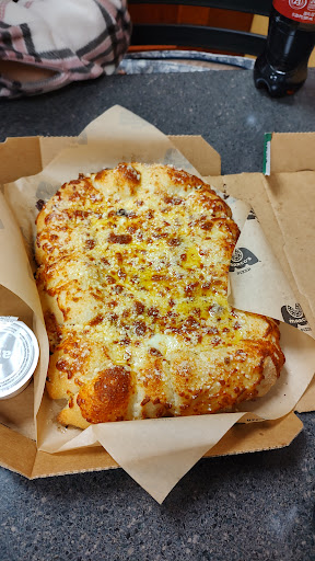 We got the Philly steak pizza, cheesy bread, and a couple drinks. It took only ten minutes to get our food (We were the only people there) and it was definitely fresh. Had to wait a few minutes to be able to eat it.