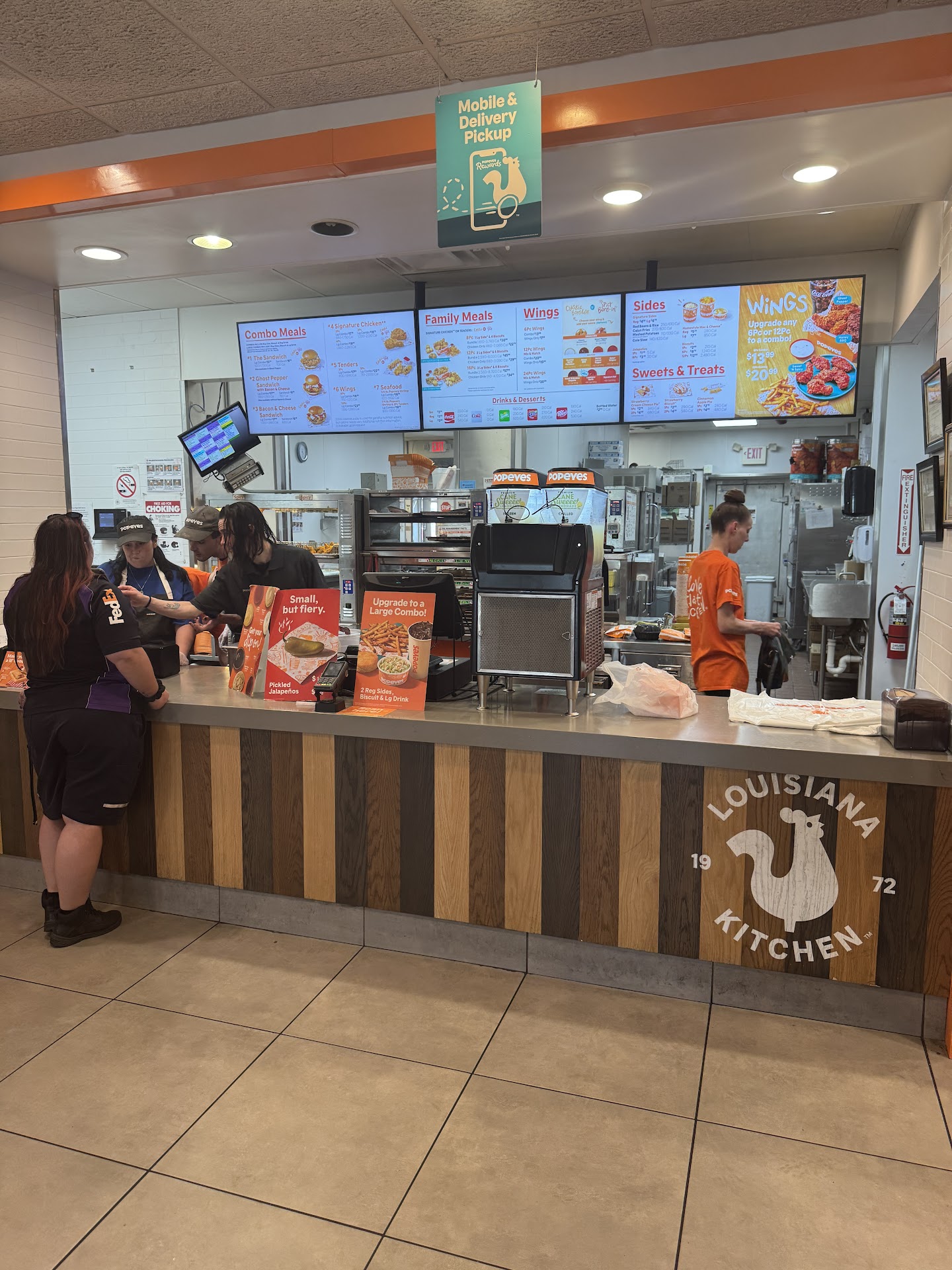 This was my first time at a Popeyes, so my hopes were high, and they were most definitely met. The man who took our order, Lucas, very clearly knew his stuff, as I inquired about the different sauces they had that I hasn't seen before, such as the blackened ranch or the spicy sweet and sour, and he told me exactly what they were. Now, for the orders: