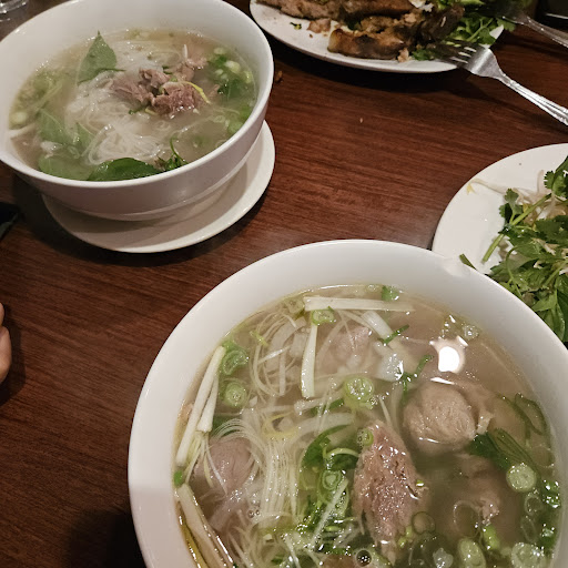 I think the food is okay, but this place must had been a change of ownership recently because I see 4.8 star rating from 244 people before coming here, and what a huge disappointment! There was only 2 other tables of customer, we got our pork rice rather quickly about 10 min, but the noodles came in about another 15 min later. We were so hungry on the way here so I ordered two large bowl noodle for me, $16.99, that's pretty pricy even or 2025, but damn the bowl came in about a standard normal small size pho with little meat, the soup is clearly seasoned broth not boiled bone soup, tiny amount of noodles, so I asked for more noodle because I told him I ordered a large bowl and I think there should be more noodle, the waiter brought in a small bowl of noodle which later charged me $3.5 for it. The pork rice was okay. I been all over America trying out phos, the tastes is really barely acceptable, but meat quality is not good neither, phone supposed to have very thin sliced tender premium beef, their beef is stacked together or uncut big chunk, and incredibly small portions, you know they even cheap out on the vegetables, for 2 big bowl of pho we get vegetable portions of 1 typical small bowl of noodle. I told the manager they shouldn't charge us the extra noodle, that guy was like sorry sir that's our size. Okay, I rarely give bad ratings on google, let me waste my five minutes and give you a real sense of how I feel now. This 4.8 rating is either bought or from last owner, noway...