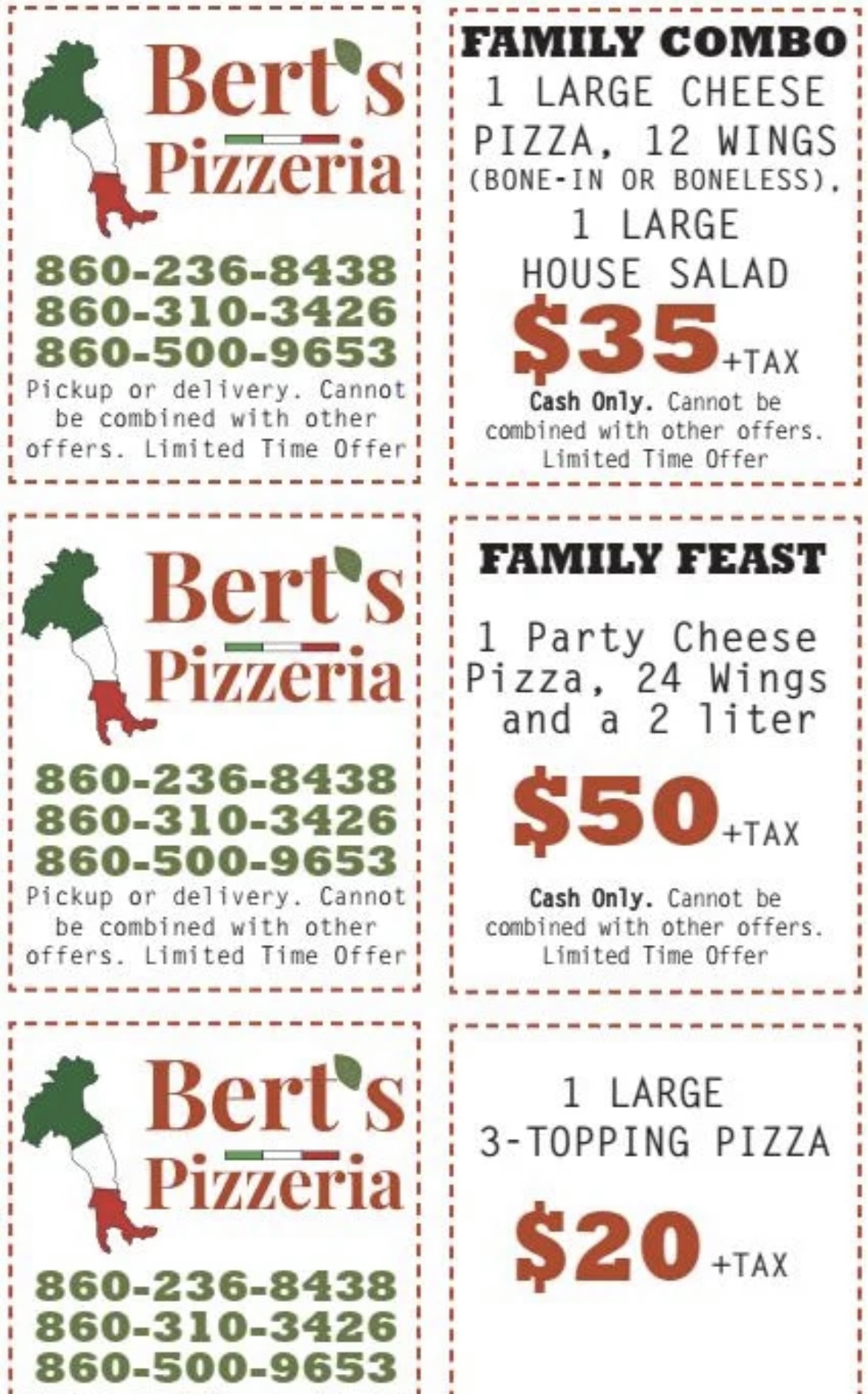 Read moreLet me begin by saying I am from Long Island, where I think we have a particular type of Italian restaurant that I don’t find often here. Yes, we have great pizza, but all the other dishes I am used to are difficult to find. I was looking for several dishes to celebrate a particular family anniversary. One of the local places had not had their regular delivery and so while looking online I found and remembered Bert’s. I called, and the very nice guy on the other end of the line was very accommodating. In fact, online, they listed they had baked ziti, but he was unfamiliar with it. I heard him talk to one of the chefs, and they immediately felt they could accommodate. I am not all that mobile and I asked about parking; this is a tiny little strip of store, but there was no problem getting a space.