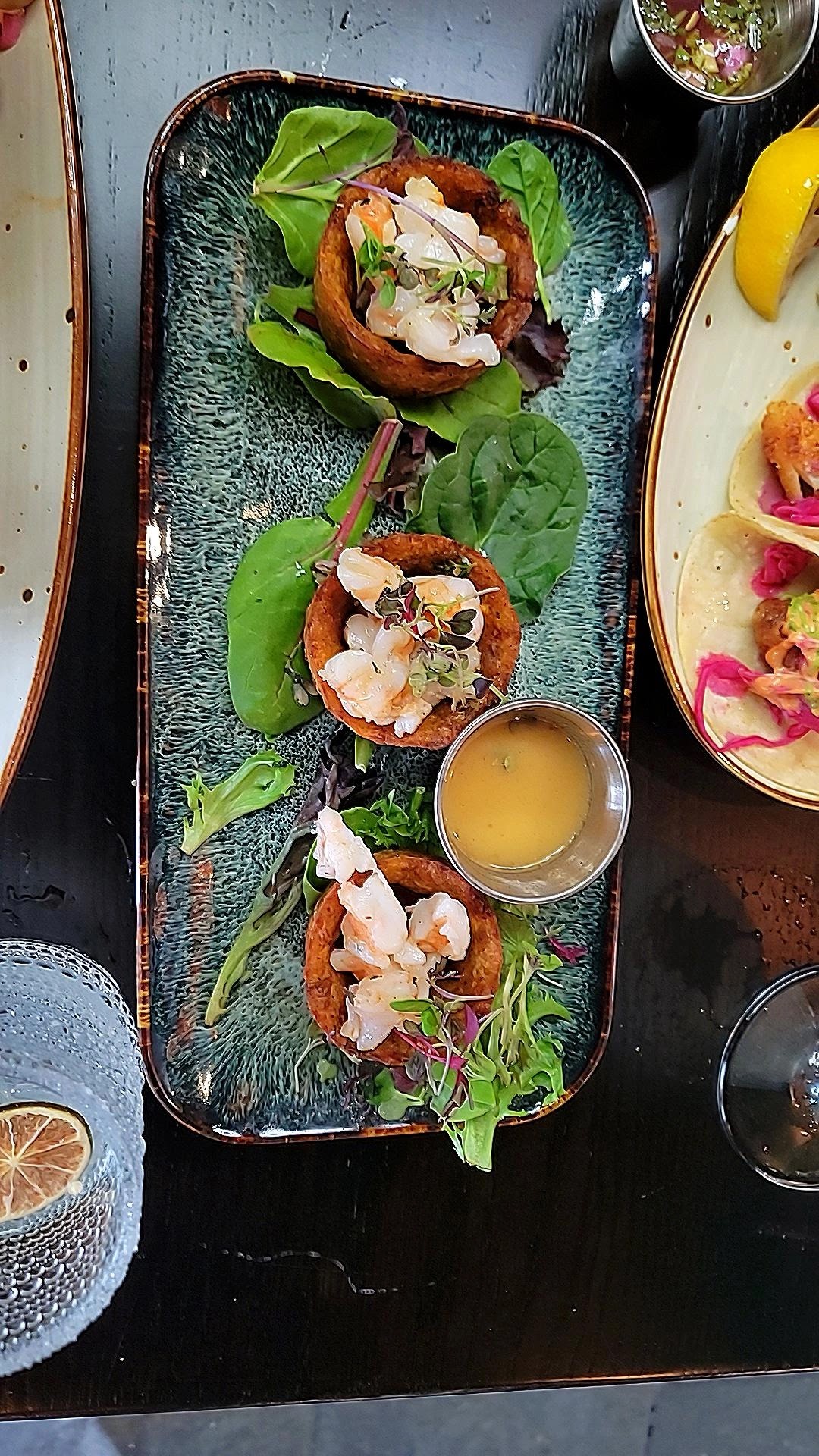 We ordered tostones, tacos, guacamole, and pork skin. The pork skin exceeded expectations especially for the price. Tacos and tostones were okay. Chipotle had better guac for cheaper.