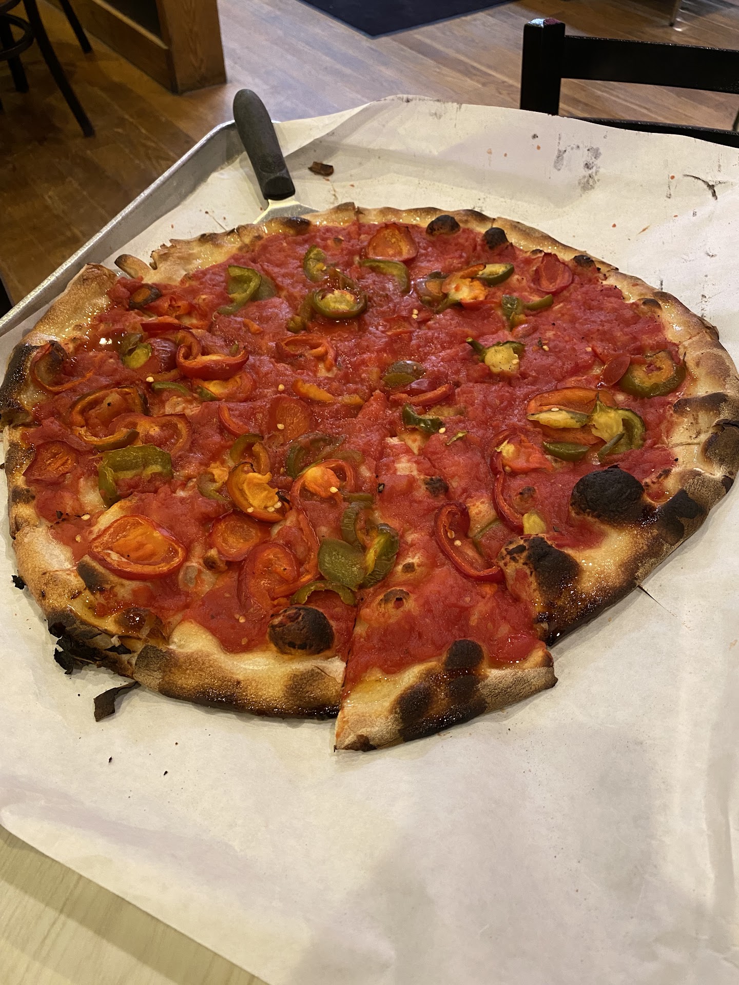 The first time I came here was with my father to celebrate a special occasion. After standing around waiting for what felt like 5 minutes or so we could not get the table cleaned as the person cleaning left to the kitchen and decided not to come back. We decided to give up and walked out annoyed and irritated as the place is not close to my house. And it was rather a bummer as we were wanting to come try out that "best pizza in New England ". After leaving a review, I was promptly contacted by a manager and asked to come back and give them another shot. This time on them. Which was rather generous offer. After some hesitation and persuading, I finally got my old man to agree to give the place another shot. We decided to bring my mother as well as she couldn't come the last time we tried. So what is there to say? The place was clean. The tables were ready. And staff was polite. Nothing spectacular, but very pleasant for the evening out with my parents. But then the pizza came. The tomato sauce was vibrating with herbs and flavor. The sausage. The bacon. The cheese. Even the dough, which looks (at best) "alright" on all the pictures I saw thus far on their site and reviews, was just perfect. Even the burn spots gave it that extra crisp that was not necessarily needed but welcomed nevertheless.