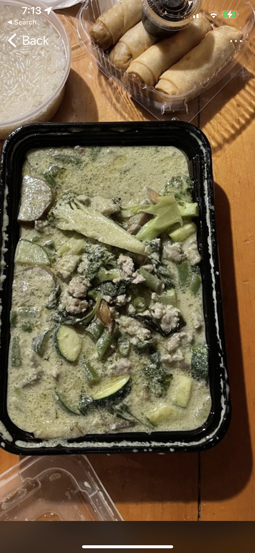 Read moreWorst green curry with pork I’ve ever had. A minuscule amount of tasteless ground pork with a few vegetables. Ground pork in curry? Not only is it one of the cheapest meats that money can buy, I have never, ever seen it in curry at a good Thai restaurant. Just as an aside, one of the vegetables was broccoli, very large stalks—really? Who puts giant broccoli stalks in curry?