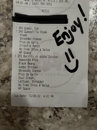 Ā Ā Ā Read moreDelightful food with terrific service... 8 months later. Times change and unfortunately so does staffing. Ordered a homewrecker on-line (not the 1st time amid what's going on). Meal comes + it's a Jr burrito instead of a regular. I ring + speak w/manager. I let her know just received an order, 1st thing she said is price is higher b/c we have no control over what GrubHub charges. I said that is not why I am calling, then looked at the receipt + wow, someone's price gouging. I let her know I am calling b/c a reg homewrecker was ordered + a Jr was delivered. Claiming she knew it wasn't a Jr cause she made it. Said I had to bring it to her right now to prove its size then if I am correct she'll make a new one .It was delivered for a reason. Really confrontational the whole conversation as well as rude. For almost 3 years went + had 'moes Mondays'. Think we know the difference too. The side dish of black beans (paid product) came in the lil self serve salsa container. She was being unprofessional + sounded childish, I said I am not going argue about this + asked her first for her name she hung up on me. I called back, a male answered, I asked for the manager on duties first name. He said it is illegal to give that information + hung up on me. I called back multiple times. No one would answer. It would be p/u + places on hold than eventually it would disconnect. Finally the gentleman answered again + I asked for the manager first name stating it is not illegal. You all have name tags w/your first name. I am not asking for anything but that. He replied, I don't want to loose my job + hung up... This...