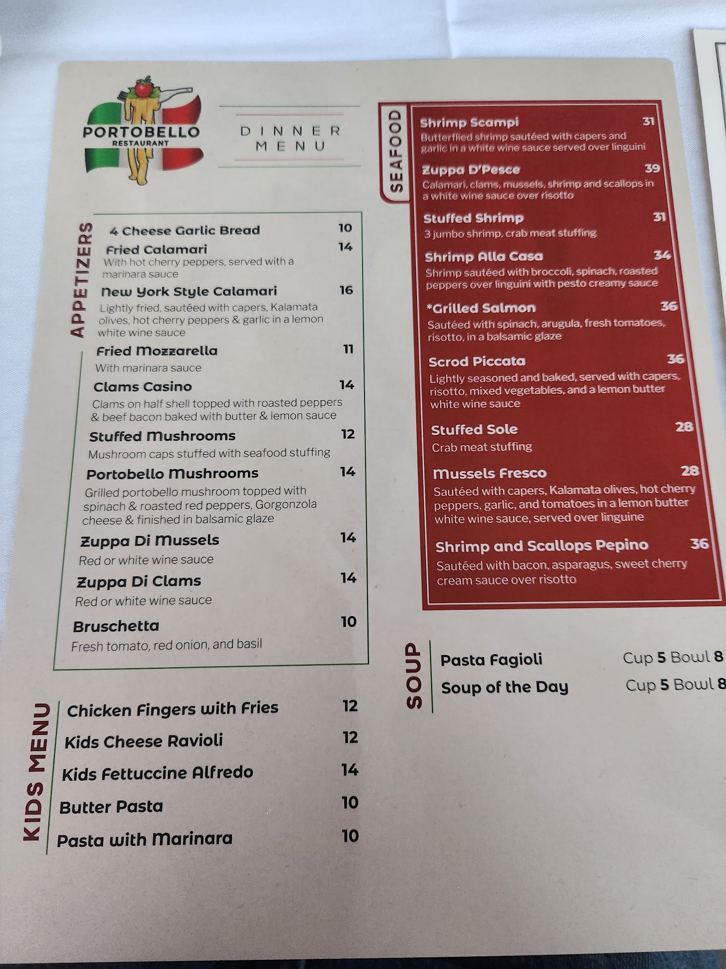 We started off being greeted kindly, attentively & our table was set for outdoors (which we had the option of choosing) Our server Steve was very patient, kind & even had small talk with us. We had a bottle of wine, small Caesar salad, chicken parm, stuffed shrimp & ended the night with the brownie lava cake… AMAZING! I’m a chicken parm fanatic & when I tell you I’ve never had one better than this.. please believe me!! The chicken was crispy on the outside but so juicy on the inside (not flattened or dry) & the sauce was just enough & not drowning my dish! My husband LOVES shrimp & said he could tell the stuffing was fresh & different than what he’s had at other restaurants. (He barely talked during his meal because he couldn’t get enough) The mashed potatoes on his plate which I even tried myself were housemade & buttery. The plates were just cared for & definitely so great! You can tell they pay attention to detail. The owner/chef came around asking all the tables how everything was going.. if we needed anything.. etc. We complimented him on such a beautifully run & tasteful establishment & had small talk with him. He’s a very well spoken & humble man who seems to be very hardworking! We felt like family because it wasn’t just a “hi & bye” conversation.. he deeply cares for his patrons! We are so grateful we ran across this gem.. we’ve been talking about the generous portion sizes, flavorful dishes & reasonable prices with our family all day. Definitely a 10/10 RECCOMMEND!!!! Can’t wait to go back & enjoy again! Thank you to our waiter Steve & all of the staff at Portobello! You are so very...