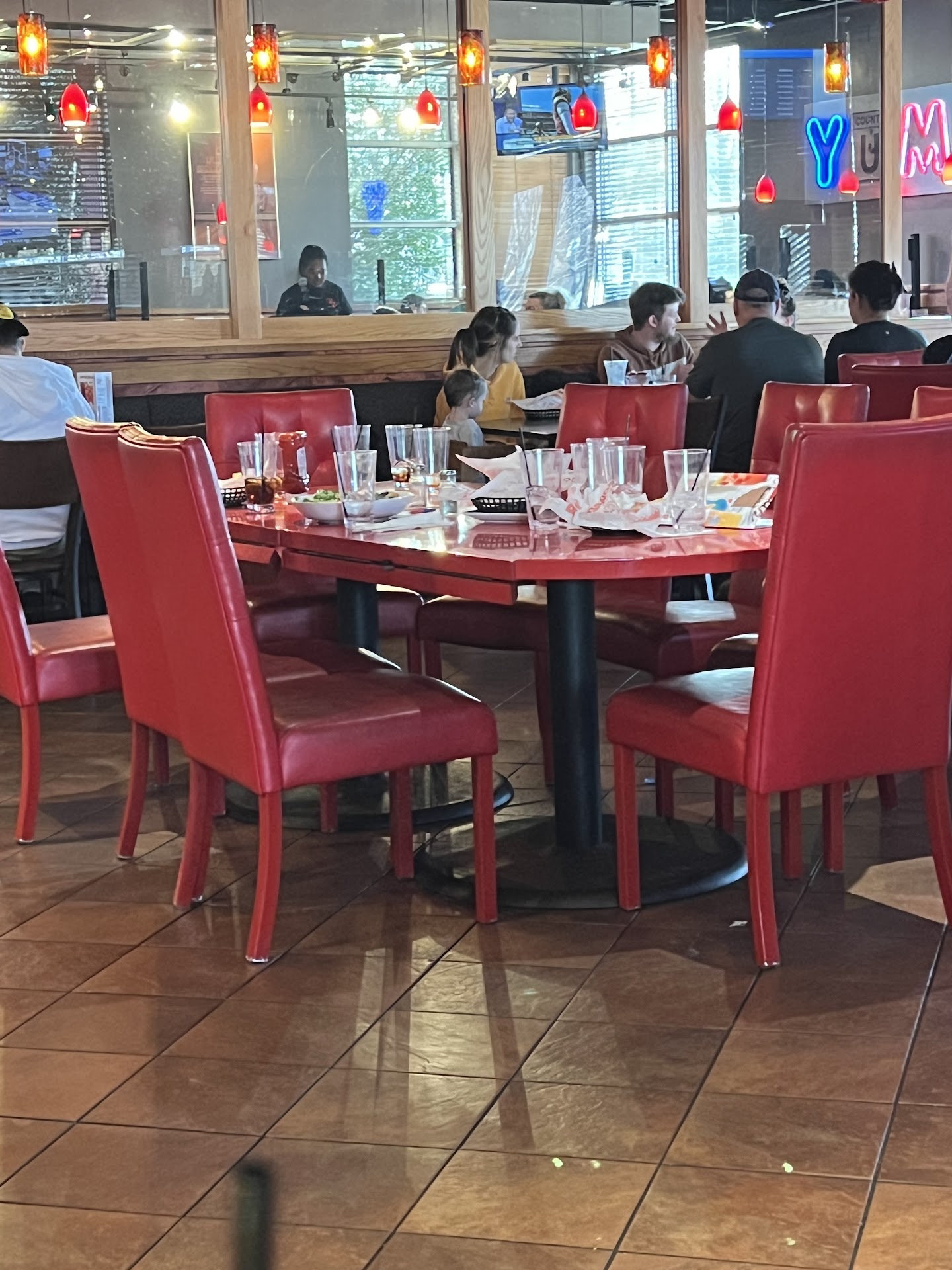 Not to mention during the extent of our visit (over an hour) there was a table almost across from us that was never even touched, food left out dirty dishes and cups.