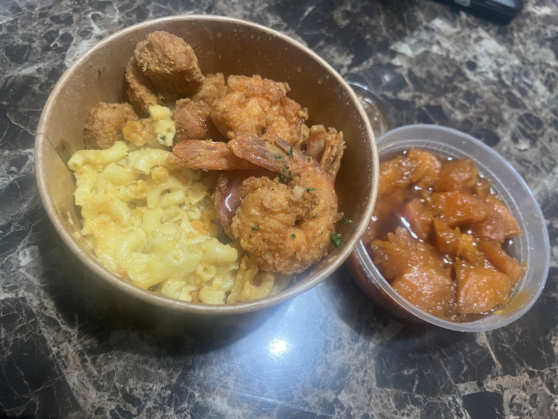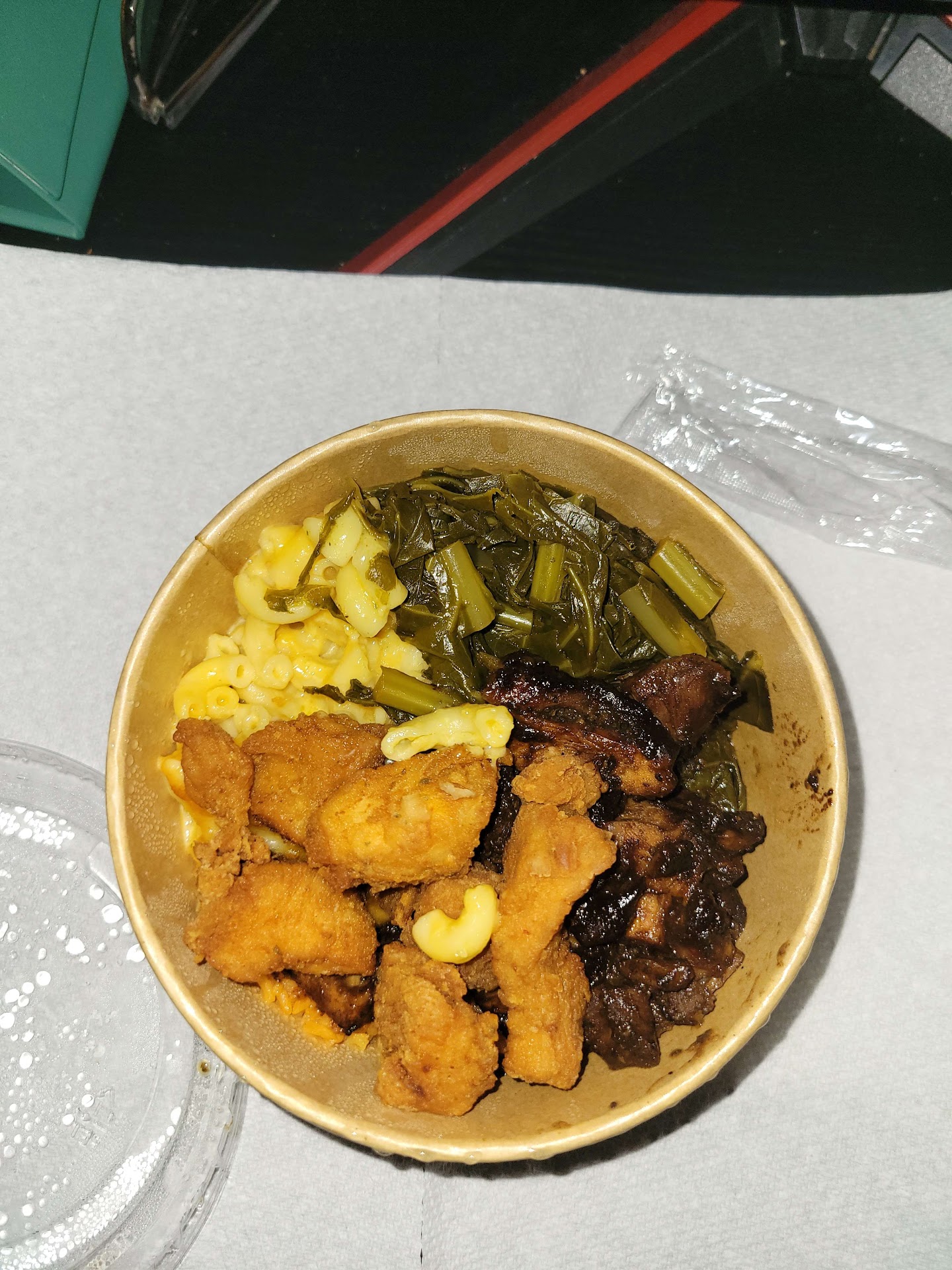 Read moreSoul Bowls is something Iâve been hearing so many great things about and I was not disappointed! The flavorssssss were all there and with it all being placed in the same bowl the flavors collectively had a dance party in my mouth. I was pleasantly surprised because not all mac and cheese is flavorful and it was a nice helping of meat provided in the bowl⊠it was confusing at first because there wasnât anyone at the register and when I ordered on the take out screen, I wasnât aware I get two sides in my bowl after ordering an extra side of yams. So make sure you speak to someone if youâre confused on building your bowl like I was. Also the time of day I went the parking lot was really busy (Saturday evening) because itâs a space shared within a shopping plaza. But all and all make sure you try...