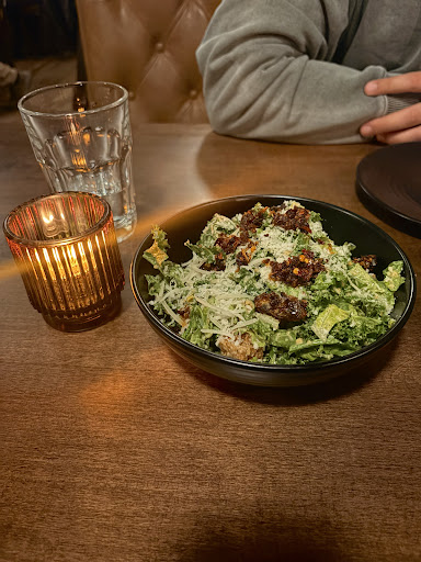 We began with a spicy Caesar salad that redefined what a starter can be. Crisp kale and romaine, crunchy focaccia croutons set a satisfying foundation. I requested the chili crunch on the side, since Iâm not big on heatâan easy accommodation that made the dish just right for my taste. Ashley, the incredible chef and owner, came out and personally served it along with our prawnsâa wonderfully personal touch.