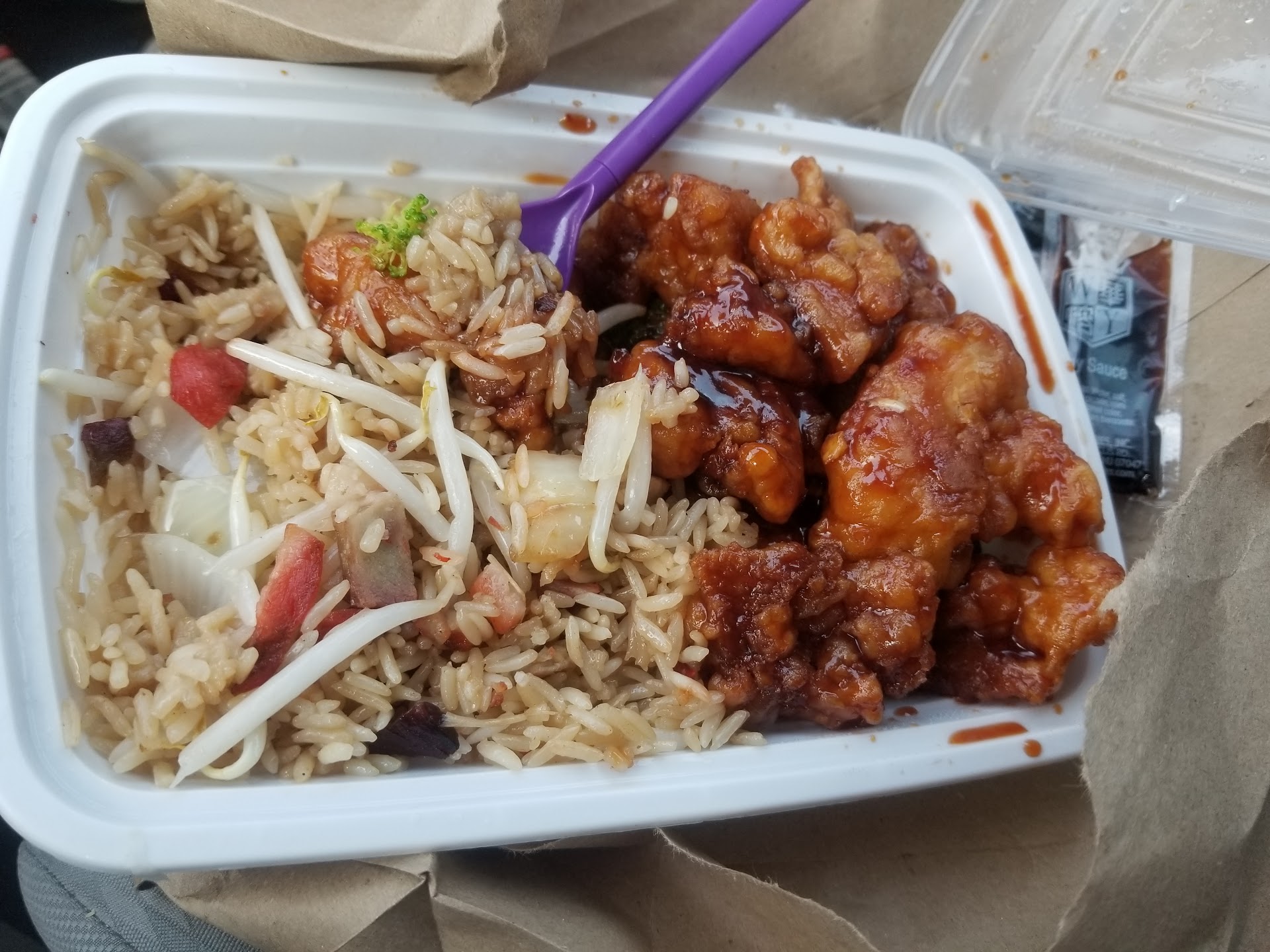 Read moreMe and my pregnant fiance went there maybe 15 minutes before they closed. I ordered the boneless spare rib tips with the pork fried rice and my fiance ordered the orange chicken with pork fried rice. Food came out very quick. Very pleased with the timing. The food was so hot and fresh that we opened the containers in the car and it was over from there lol. The rice was perfect. Even had bean sprout in it. Those boneless spear tips was just oooh sooo wonderful. They way that sweet glaze was just stuck onto the pork. Wasnt dry at all. The orange chicken was the prize. Didnt have that mush under the skin. It kept the crispyness even under that sauce. I was very pleased they put actual orange cubes in it. The egg roll was the icing on the cake. So hot make you do the mouth dance. That perfect crisp was on point. WE WILL BE...