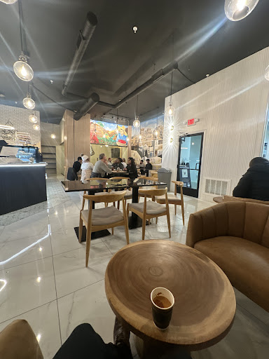 Read moreI had a great experience here this morning. I went in to get some work done. The wifi is fast, the sunny window seats are great for people-watching, and this a must for me--the chairs are comfy! My laptop was fully charged so it didn't matter for me, but at least by the windows, I didn't see outlets. Music was also ambient and great, perfect for getting work done. I forget the barista's names but she said her favorite is the iced pistachio latte and it was so good! It could be sweet for some people as a daily coffee drink but since I was looking for a treat, it was perfect. My friend loved hers too. We got the za'atar pita (I forget the exact name but it started with an M) and mixed cheese pastry. Great textures and complimented our drinks perfectly. Everything was so good that I got a yemeni signature latte with oat milk to-go for my boyfriend to try at home and he...