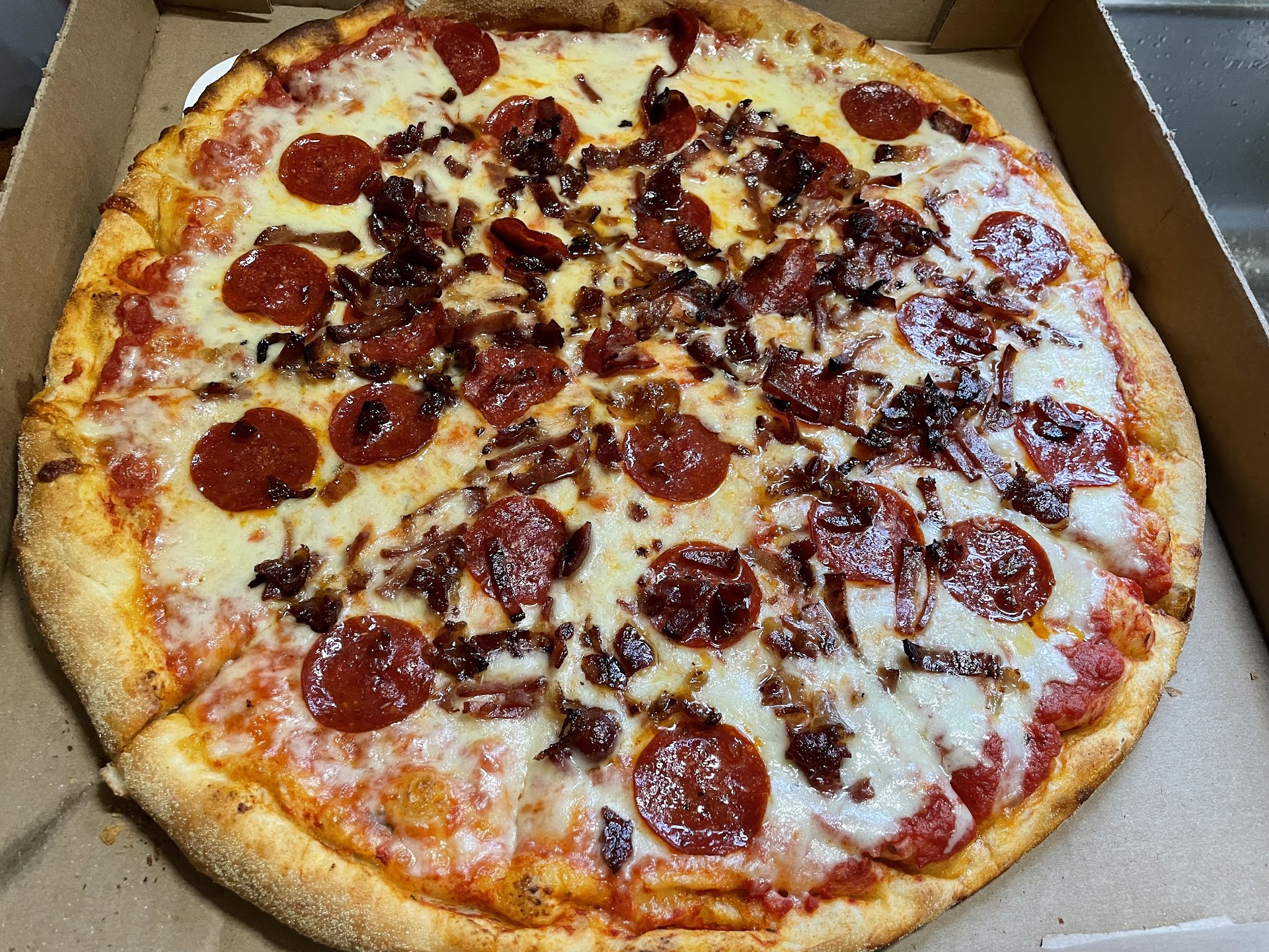 Order a small cheese piece with a layer of ham, a layer of sausage and a complete layer of bacon. Not the meat lovers pizza because I wanted lots of meat. What shows up? A sprinkled cheese pie without the complete layers I ordered. Sprinkled! If I wanted that I would of ordered the meat lovers. Instead I paid for each topping individually and explained that I wanted a "complete" topping of each meat and charge me whatever it cost...But no. They ripped me off and I refused it. Why is it so hard to make what I paid and asked for? Why...