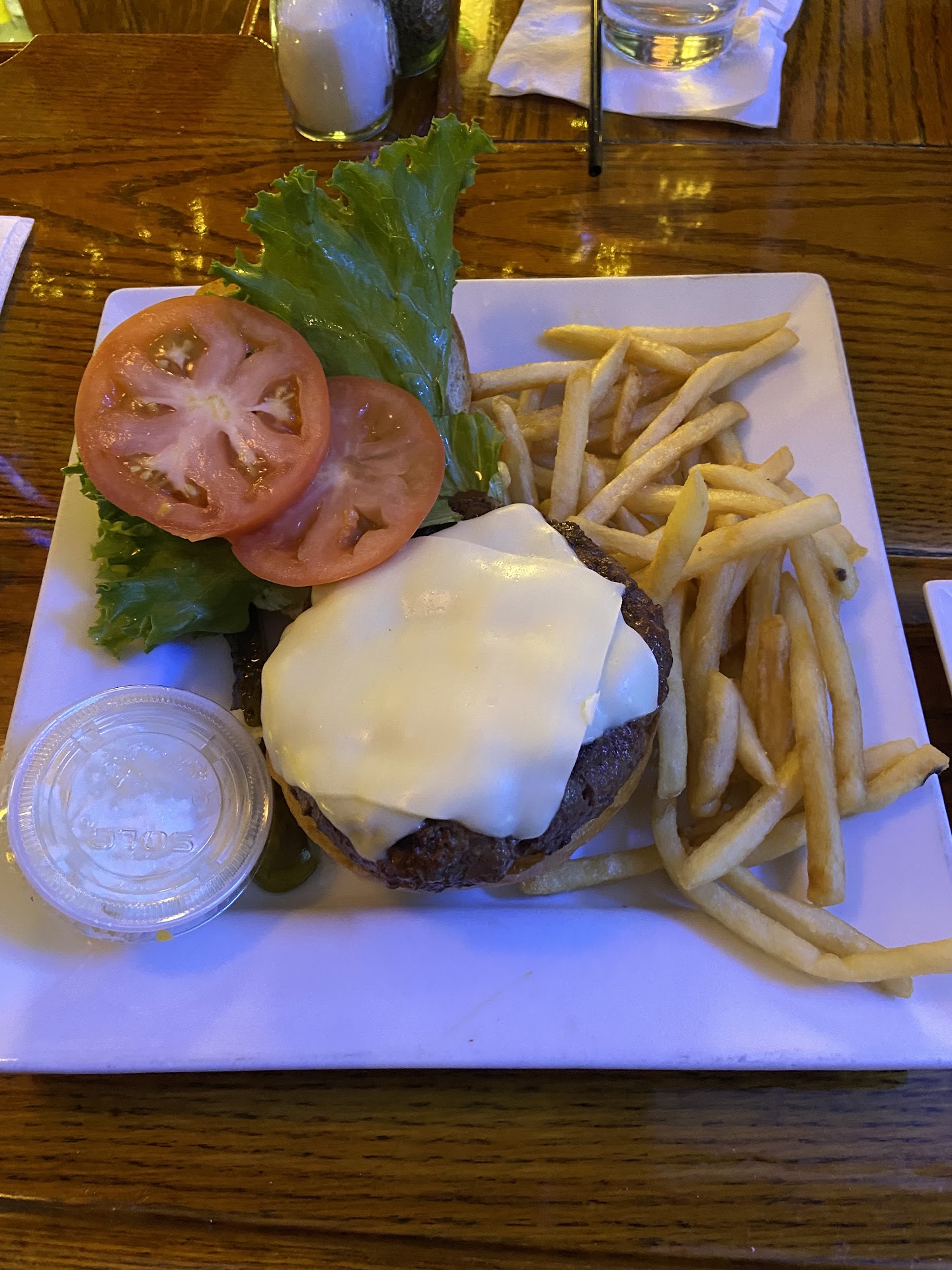 My roommate came with me, and we both got sandwiches and gave each other half of what we ordered. Her favorite sandwich to order is the French Dip, and I got the Lobster Grilled Cheese. I also got the beer battered black and tan onion rings with my sandwich. I greatly enjoyed both sandwiches and the onion rings. I also ordered a chocolate peanut butter pie piece for dessert and greatly enjoyed that as well.