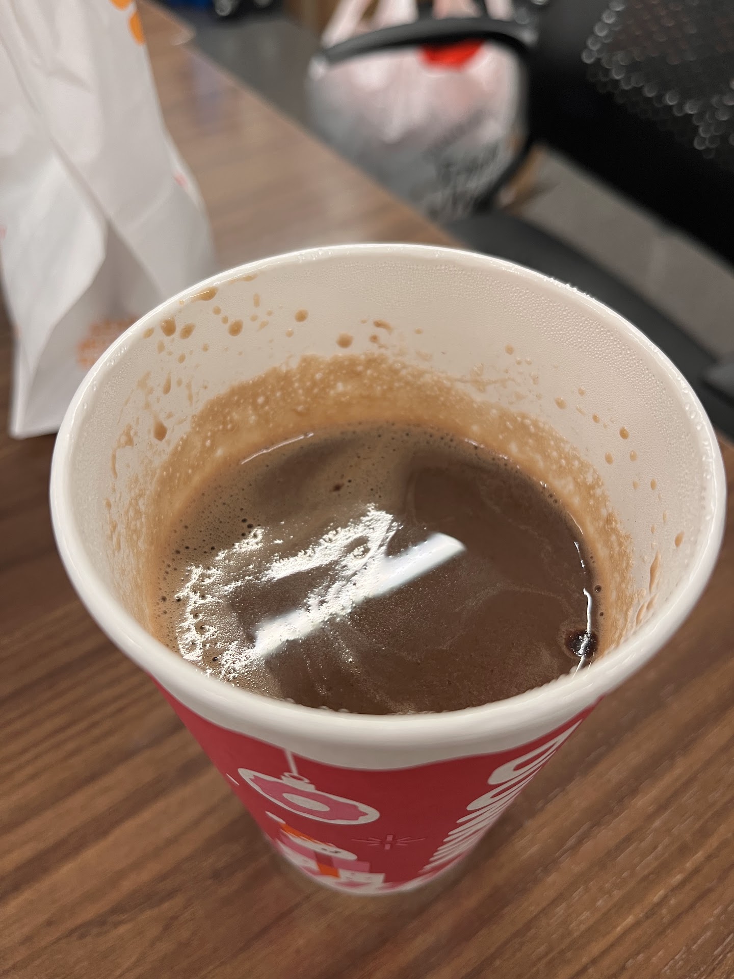 This is a rest stop Dunkin'. So the atmosphere is as expected. The guy serving us was nice enough. We were only ordering coffee. We never tried coffee at Dunkin' before and I can promise that we never will again 𤢠We are a family that is OBSESSED with coffee. And mind you, I didn't expect it to be any better than gas station coffee. But it was WORSE! 𤢠I've never had such terrible coffee in my life! š They DEFINITELY need to start using better coffee. We all ended up dumping most of our coffee out a bit later on when we could only manage to choke down half of it. It was just gross. We should have just stuck to a gas station because Dunkin is stupidly high priced for the most...