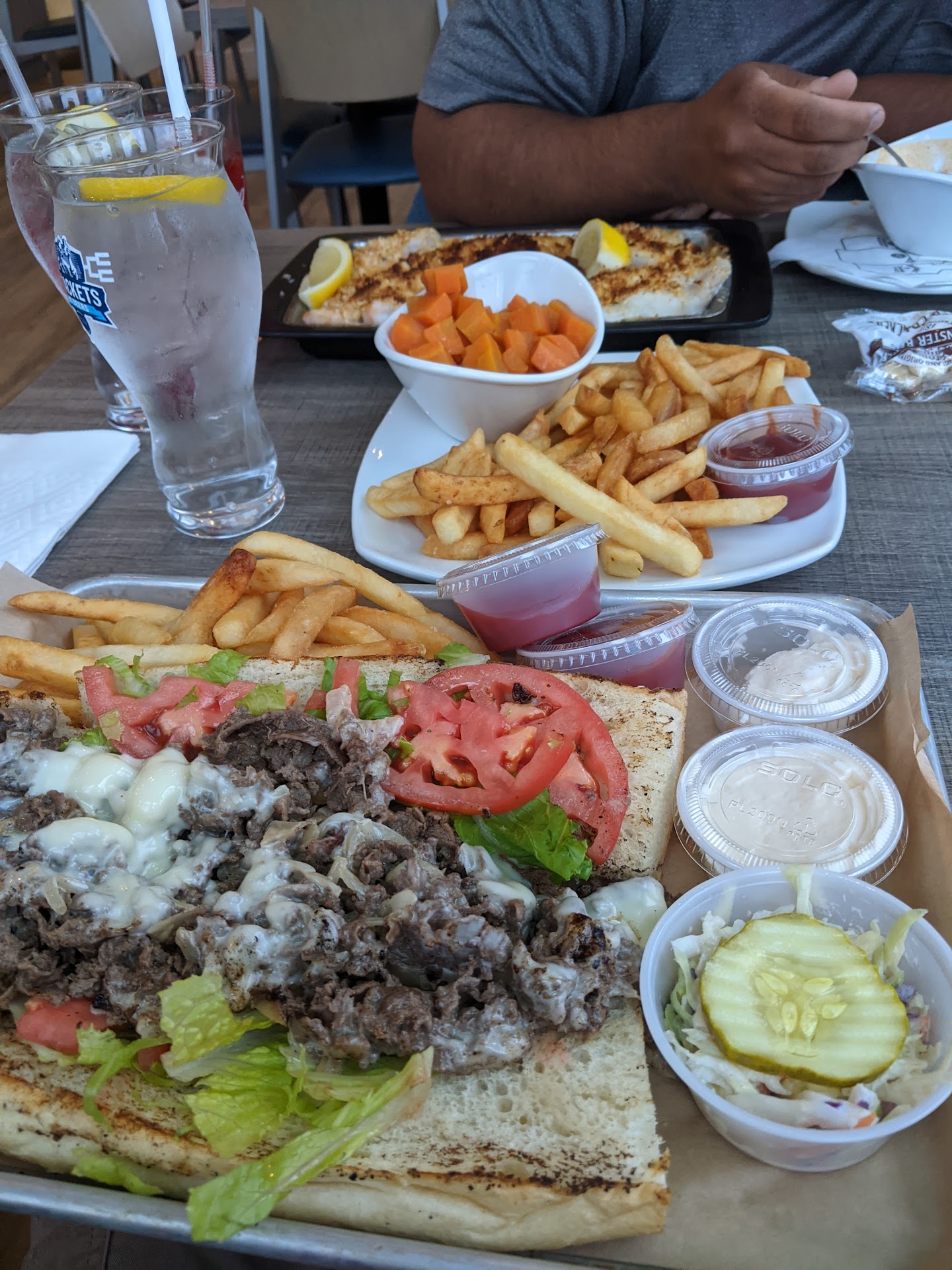 The restaurant being by the beach is, it’s a beautiful view. Unfortunately the service and food was underwhelming. I want to go in order….To start, my friend and I were seated and given a drink menu(no food menu). We also asked for a high chair, for my friends 7 month old. We put in drink orders in the mean time. We sat around and waited for the high chair and food menus for quite a while. The drinks came out, yet we still had no menu or high chair. We had to get up and get the high chair ourselves along with a menu. Only one menu(because they were running low) The drink I got was a frozen margarita. It was barely frozen, which meant it sat at the bar for a while. Mean while other people were seated way after us, and were already getting menus and waters(which we had to ask a few times for water) We ordered the New York style calamari. The calamari its self needed salt, it was very bland. The spicy sauce carried the calamari. We both ordered the fried cod tacos for our main meal. The pico de gallo and garlic-lime crema was nice and fresh. The cod its self lacked flavor and seasoning. It didn’t taste fresh. The cod was very dry. The pico de gallo and crema carried the cod fish. The cod fish should of been the star of the dish and it wasn’t. The taco was over packed with the pico de gallo. To me they were trying to mask the fact the cod fish by its self tasted bland. Even the French fries ere not seasoned. I am also compassionate to our server. We were outside and there was a big table of people. She was the only server for all of us out there. She wasn’t very attentive to our table. She forgot about us a few times. I would say, if there are big parties , there should be more than one server in that area. My experience was underwhelming. Which makes me sad because this restaurant is in a...
