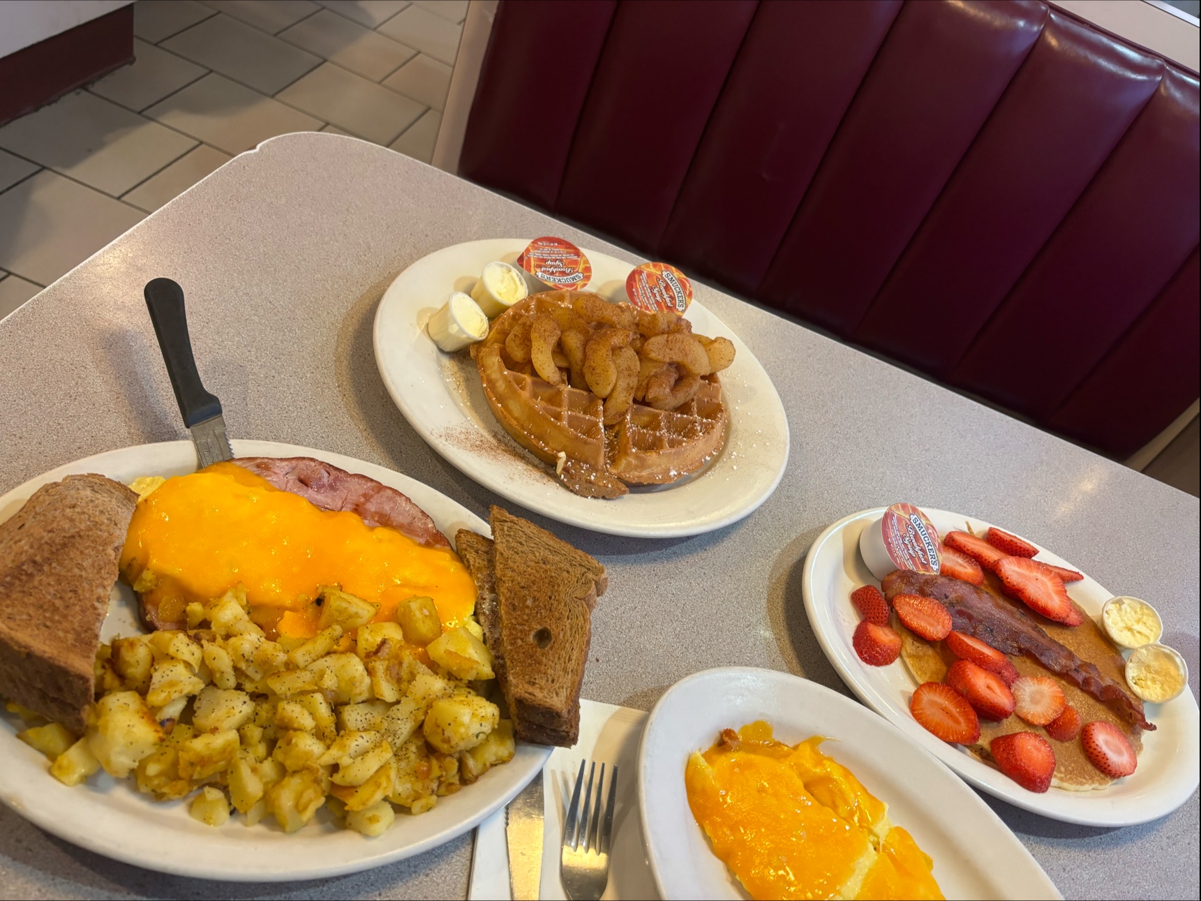Read moreFirst. The food was great, best corned beef hash I’ve ever had! That being said, service was pretty terrible. The hostess who was seating guest waved at us from across the diner to sit at a table, we where not greeted. Then our waitress came over and slapped some waters in the table for us and walked away. She never took our drink orders. When she finally came back she took our order. Then after quiet a long wait she brought our food. The hash wasn’t cooked the way I had asked, I wasn’t going to say anything but then she offered to return it to the kitchen to be cooked a little longer, I said it was okay, she then responded with “I can bring it back but there is no room on the grill now” so I didn’t understand why she offered in the first place. Then when we where eating she sat in the guests seat that was behind us while he was in the rest room….she said to them “you know it’s going to be a long wait for food right?” And then made the gentleman wait for his seat back when he returned from the bathroom! Upon checking out the hostess took my card, put it in the machine and then walked away… for a good three minutes before returning to give me my card back so that I could sign and we could leave. It is probably the worst service I’ve ever experienced. It’s a shame, this place has good food, if they fixed it up a little and got some better attitudes working In there this place...