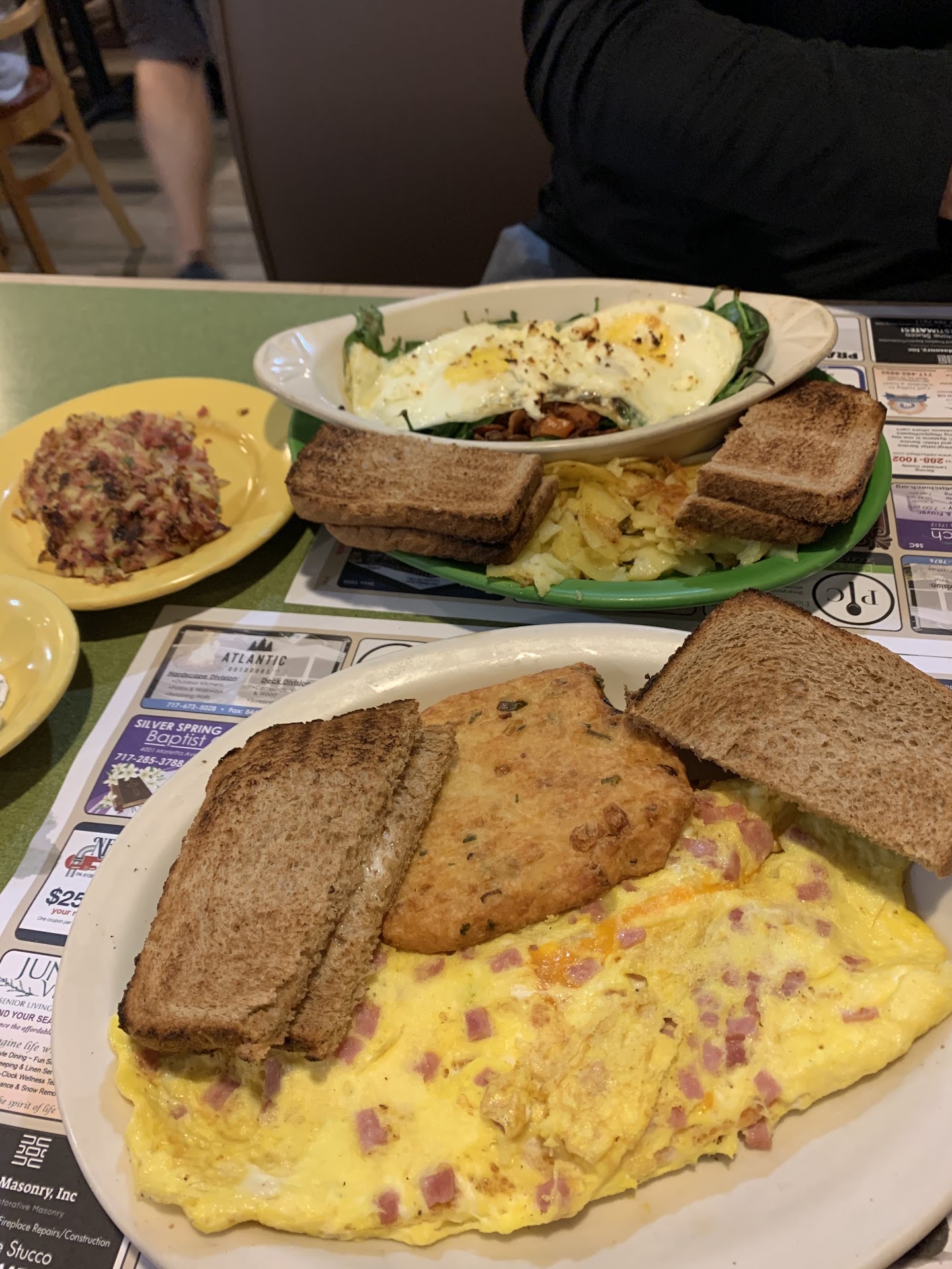 I know a lot of local families stop by here regularly. After many years of convincing us to finally go, we did. The wait was actually very long, as it was a Sunday morning and crowded. But there was a large party ahead of us who did not like the television above them, and asked if he turned off. Considering there was no sound, I thought it was a bit odd. They had rowdy kids who couldnāt stand the wait (it was at least 45 minutes). We also found out before we left that our waitress was on her first ever shift... and had no help waitressing, which is why the service was inconsistent and the wait was long. She was very friendly, though. And she apologized for the wait. But I would not exactly say that the food was worth the wait. It was mediocre-good, but it did not totally satisfy my expectations after the long wait and noisy table neighbors & close proximity to them, as well. Itās a very cozy area. If you like to have space while eating, this isnāt the best place for you. Overall it was not the worst, but the service and food could be...