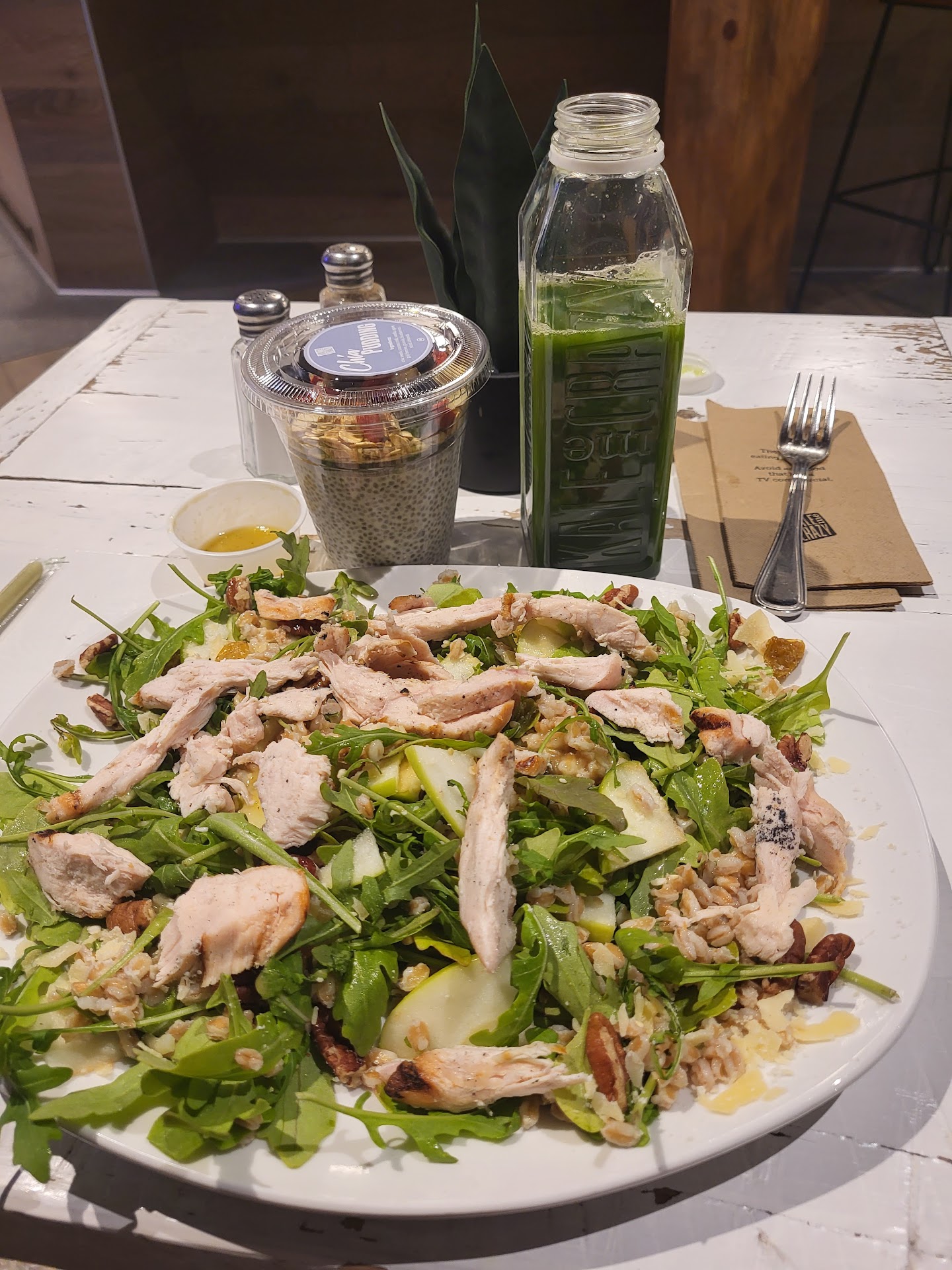 The food is tasty and fresh, but delivery portions and pricing (Doordash) are outrageous! The Deluxe Acai Bowl is $16. The photo shows a huge bowl, but you only get 1/3 of that via takeout. If you received the amount shown in the restaurants photo, the price would be totally justified and worth it. But you don't and it's wholly deceptive. If they showed they true portion via delivery and I paid for it, would totally be on me but they do not. The Chia Pudding is delicious but also overpriced (however, probably the least offensive pricing wise). The chicken pesto wrap is overpriced (prob by 3x) as well ($17) as it is small and 75-80% of it is spinach with chicken around one side which makes most of the bites spinach with a sliver of chicken and sun dried tomato. I like this place but I won't become a regular as I can not justify paying this much for so little especially when the photography used (implying larger portions) is deceptive (purposeful or not).