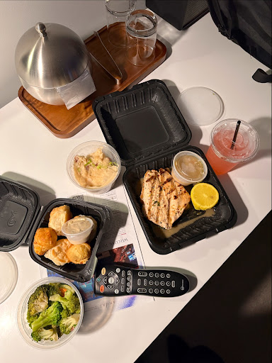 We finally got our drinks and then eventually our food, but I was NOT at all happy with our experience. The food was mediocre at best, menu was overpriced with portions that were less than expected served on giant aluminum plates that seemed completely unnecessary and made the portions look all the more unimpressive.