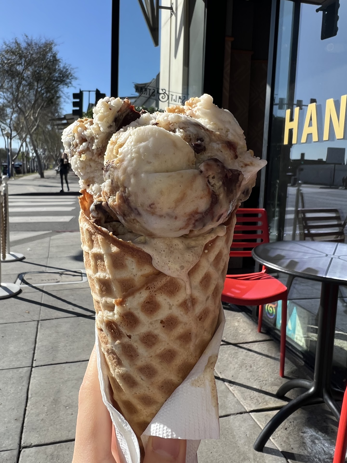 I think salt and straw is okay. It’s not the best ice cream I’ve had but it’s definitely not bad ice cream! They have a variety of creative fun flavors which I think rocks, they’re super sweet and I feel like they have a lot of specialty flavors with cookies / chunks in them. (I’m less of a fan of those) ive had the honey lavender and it was good, and then I had the cinnamon snickerdoodle and the oat milk and cookies. Both are heavier flavors. I’ve tasted a bit the red velvet with frosting and it was super sweet! the ice cream isn’t as milky as some other ice creams I’ve had. I think if you like exotic flavors or trying new ice cream flavors you’ll probably enjoy salt and straw. Their waffle cones are good and definitely fresh. One satisfying thing is that the portions are large. A lot of LA I’ve cream spots aren’t as generous with their scoops. The single scoop is actually more than enough ice cream here — you can even choose a “split scoop” where you get the size of one scoop but two flavors! The service here has always been good each time I’ve been, and This location has outdoor seatings that’s cute, and it’s located on a corner stop on Santa Monica blvd. The parking in the back is super tight and limited but you can find street parking around the block. The reason why I gave it three stars was because the ice cream was sweeter than my taste, I didn’t fully enjoy the heaviness of the chocolate cookie chunks in the ice cream and the location had some people soliciting outside nearby. It doesn’t always feel like the safest location but it’s fine in the daytime. i do believe salt and straw is a pretty good ice cream chain though, and definitely...