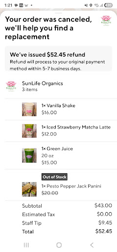 Read moreItâs so sad that I have to leave 1 star only because I adore and enjoy the drinks from SunLife Organics. UNFORTUNATELY the employees are not experienced or follow a strict recipe for the shakes that always taste different ( not good at all ) just like water, mostly forget important ingredients like almond butter or dates which makes the drink very special. I thought that SunLife Organics cares about the image and the care, satisfaction for their customers. You think that the employees would follow a recipe and makes the drink always good and very important the SAME!!!!!! We wasted lots of valuable time and money. I am very sad about it because I donât want to miss my shakes here. I can say for sure that places like this will go in the ruin someday by not taking care of the quality and satisfaction for their customers. Also itâs not nice to never know if the drink will be good today or not. To much stress. The drink has to be always good and the same! I hope that a higher person here will take this SERIOUS AND MAKE SURE THAT THE ITEMS THEY SELL HAVE ALWAYS THE SAME QUALITY...