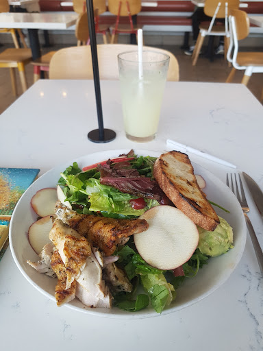 First, I want to say we LOVE Tender Greens! We love the Manhattan Beach location and Culver City location. This review is for the West Hollywood location. This was our worst experience at a Tender Greens, ever! To start, we ordered a rustic chicken soup and we received a tomato soup, I told the grumpy lady with black painted eyebrows that we ordered the chicken soup. She scowled,without saying a word, she turned around and left. She came back a couple minutes later with the chicken soup. Second, my food came first. I ordered a Cesar salad with steak. We waited. We waited. And waited some more for a grilled cheese with salad for my daughter. I was almost done eating when it arrived. Really?! For a grilled cheese?! When it arrived, it WASN’T a grilled cheese!! It was a ciabatta bread with Swiss cheese (I took a picture)! I couldn’t believe it. Needless to say, my daughter hated it. I had to send it back and get my money back. Lastly, there were 7 employees behind the counter. Seven! I took a picture. Not one person came by to ask if I needled a refill or if everything was ok. I waited and waited for someone. I finally had to get up myself to ask for a return on the grilled cheese. Horrible service! Horrible food!...