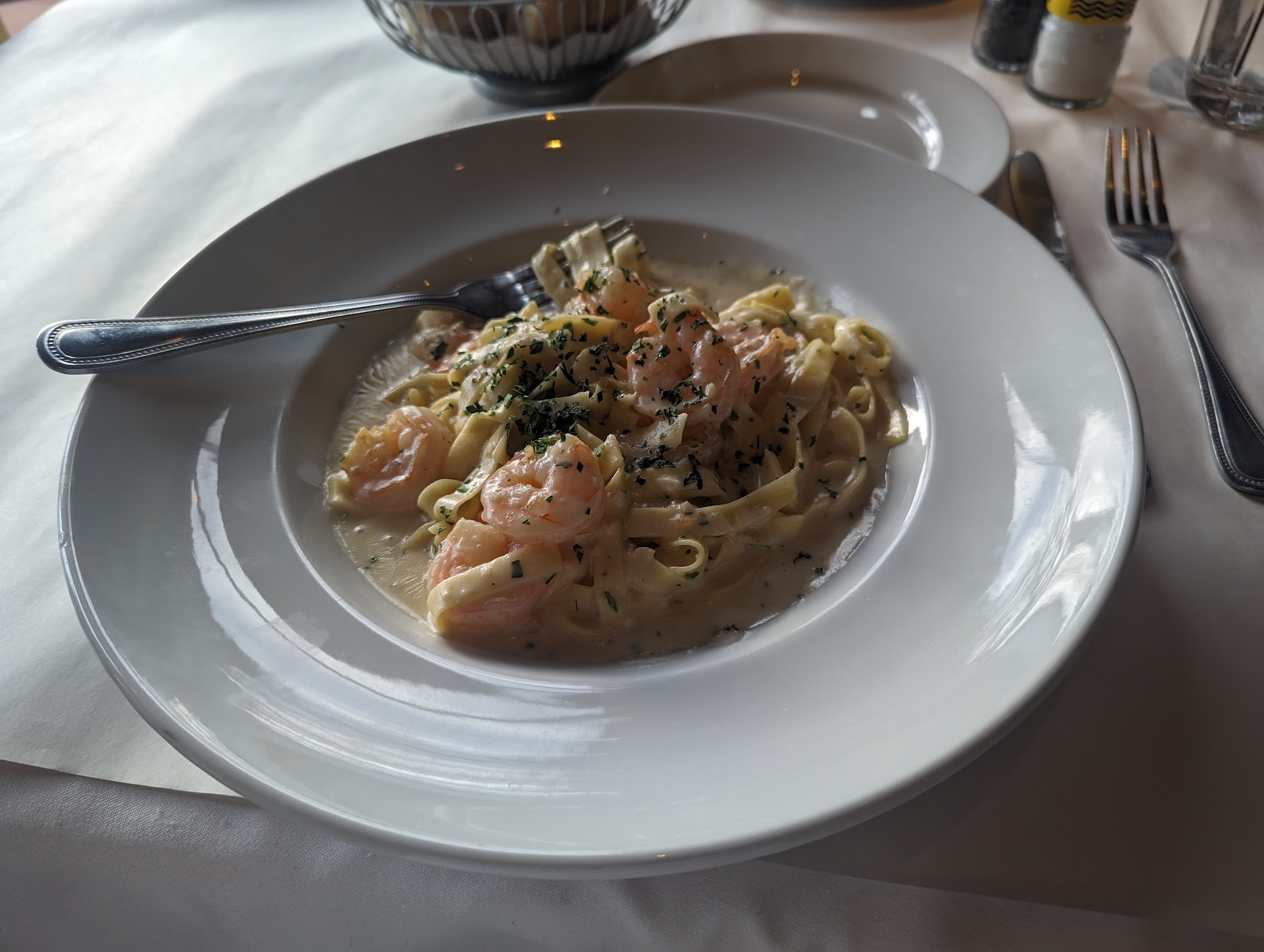 I was given a soup spoon with my meal but my friend had to ask for silverware to eat his chicken marsala. He said it was good but please understand that this particular friend likes microwaved hot dogs. I did not taste it, but can accurately describe what I saw. It looked like microwaved chicken breast pieces topped with a rusty brown sauce with a bunch of canned mushrooms in it. Seriously, there was no "browned" visible on the chicken. Just a yellow gray color that could have been achieved by microwaving, steaming, or boiling. And the dark color and thickness of the sauce were not what I would except of a marsala sauce. I would not have eaten it. My friend's green beans looked very fresh and correctly cooked. He commented that they were really good.