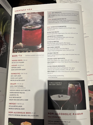 The drinks were actually very good. I got some signature margarita that while wasn't extremely impressive was equivalent to what I'd compare to something like Red Lobster. My girlfriend got some kind of drink with rosemary and black salt and smoke. It looked impressive, the smoke smelled great, and she said it was good. Honestly, I think if the bartender had written the menu and cooked everything it would have been better, I don't even care if she's never seen a pan. It's like... So TGI Fridays has a couple Asian things that are obviously tuned to the average mashed potatoes and pizza eating American... And their Asian food tastes more authentic and more flavorful than this place. Honestly, we will never be eating here again.