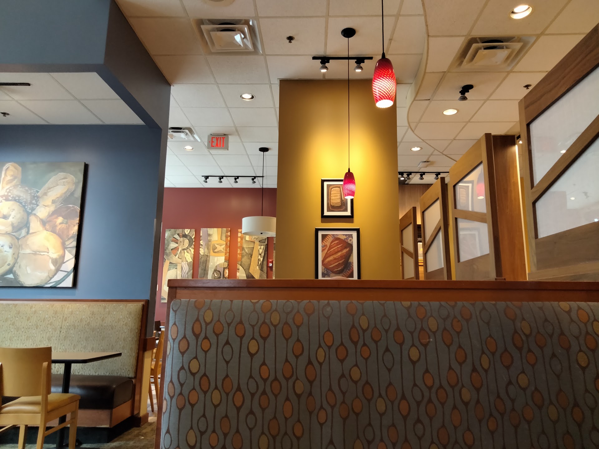 Read moreWe love panera "you pick two" but were really disappointed with the food at this visit. We ordered tomato soup and grilled cheese through the panera app for "grab and go" service and arrived within 5 minutes of when it was said to be ready, but the soup was cold when we got home 5 minutes later, so it's unlikely it was ever very hot. It was also not the smooth and creamy blended soup we usually get, it was more like someone had dumped a can of diced tomatoes in a cup of tomato juice, a very unpleasant texture and it seemed to be missing the basil and other herbs. The grilled cheese was also cold and seemed hastily slapped together, not two pieces of bread stacked on each other, but bread tossed on top of melted cheese that was stuck to the wrapper. Additionally, the side of chips came in a bag with a hole in it, so we didn't trust eating that at all! The other sandwich, a deli turkey, was unusually thin on turkey and not the fresh and meaty sandwich like we had ordered at other locations. We will probably try panera again, but likely not this location which is a shame because it's so...