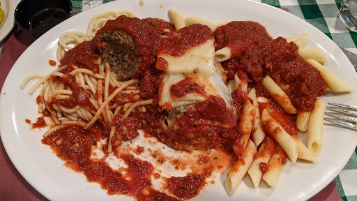 The salads were great. The portions were excellent and generous. The lasagna was not delicious; I don’t know what it was, but it wasn’t like any lasagna I’ve ever had, and I’ve had authentic lasagna all the way to frozen grocery store lasagna. This lasagna was, I’m so sorry to say, really not good. My combo was lasagna, spaghetti, and chicken parm. Hers was the same except fettuccine Alfredo instead of spaghetti. The chicken parm was barely warm; it was as if had been warmed up vs made to order. And it was not delicious even if it had been made to order. The chicken appeared to be a frozen piece from a bag, with not much Italian or other seasoning.