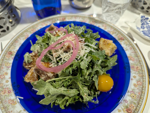 Now the cons: Location - be advised this is next door to the movie lounge. As they have a shared wall and the sound system is mounted to said wall - the china and mirrors were vibrating and we could hear the movie during what was supposed to be peaceful service. Make sure you look up movies times prior to making a reservation here. Food - in general tasted good - but really missed the mark for $35 per person. My wife and I came in with high expectations and walked out paying $70+ for really an experience not necessarily the food. Scones - sorry but these are not scones. What was served to us on the tower was shocking. A single bite nugget that was dwarfed by the Cheddar Bay Biscuit (not cookie - but Red Lobster style biscuit). When I heard my wife actually crunching on it - I knew we were in for something different. The color / texture / cook was not that of a scone. 4 - Clotted cream? I'm not sure it was. More like whipped butter maybe? It was served in such a small quantity that we could not coat the scones. 5 - The Curry Chicken Wraps - while they were tasty wraps - I wouldn't call them Curry.