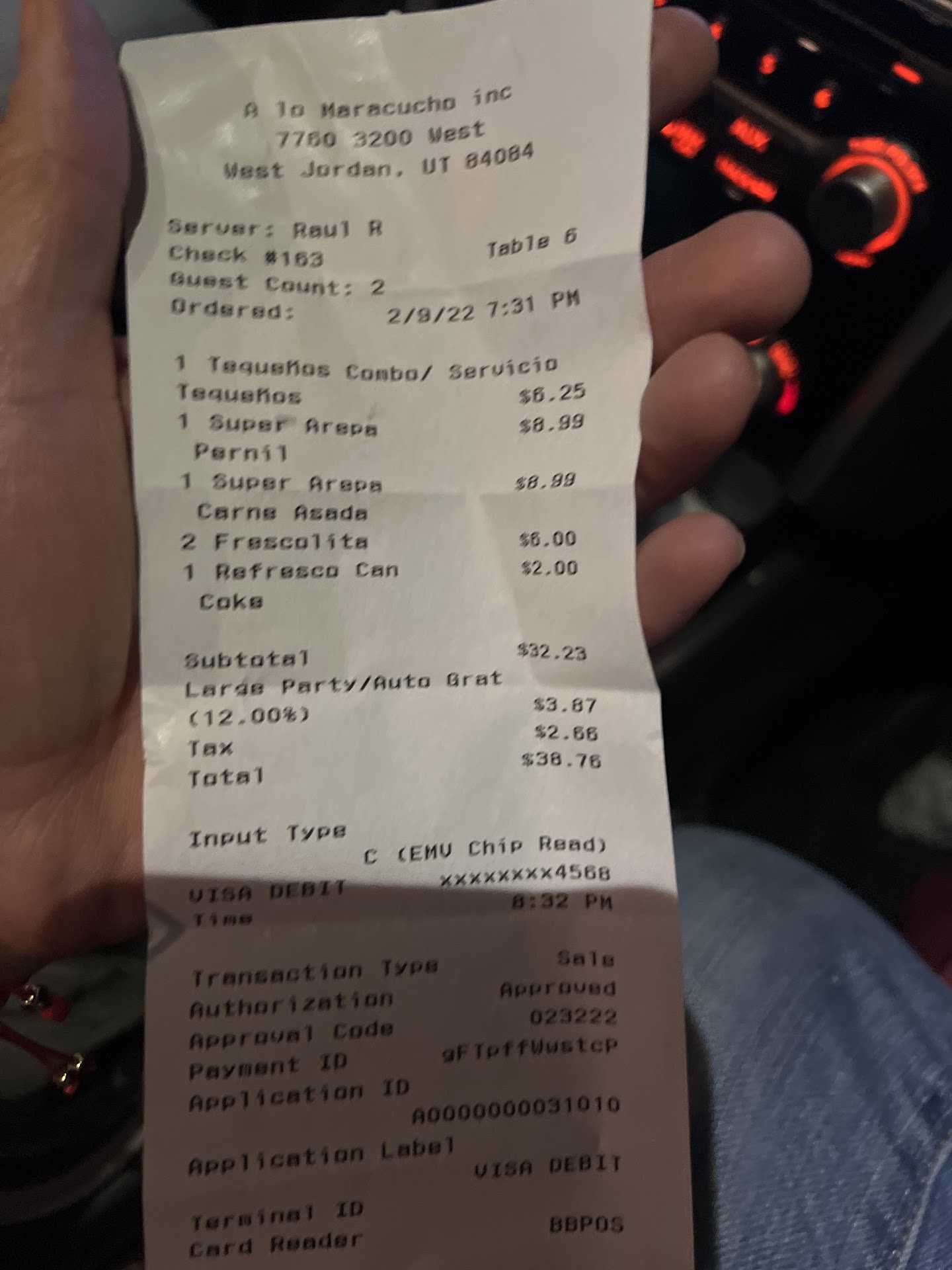 Read moreA Lo Maracucho saved my life. As a Venezuelan, who lived most of his life in America in Miami and moved to SLC, I was VERY worried about not being able to find good Venezuelan food like we have in FL. Especially, after going to a Venezuelan spot near my apartment in SLC and finding the Tequenos and cheese Empanadas to be completely tasteless. I tried a couple of other Venezuelan places too, all were disappointing and I began to think Utah may just not have good Venezuelan food. That is until I found A Lo Maracucho. They're Tequenos are large juicy and have authentically savory Venezuelan style cheese. The green sauce it brings are served in a large serving which always has just the right amount of sauce. Prices are not extravagant. Every Arepa, Tapa, or Patacon I've had has been delicious. From my understanding they make their own Venezuelan cheese and even sell it! This place even rivals some of the best Venezuelan places in FL, which is saying something as there are so many there and a hot spot for Venezuelans in general. The only downside of this place is that its about 30 minutes away from SLC but I gladly do the 30 minute drive every weekend and I'm glad to...