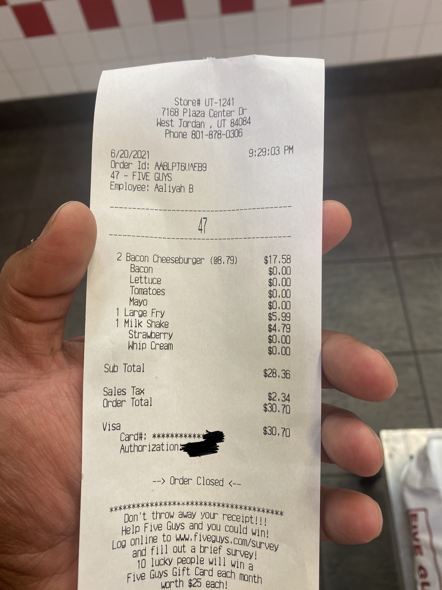 I was initially surprised to see all employees file out of the back when I and another customer walked in simultaneously and NOT ONE WAS WEARING A MASK! Then when we ordered the cashier offered us a water cup while we wait. My son and I declined. She was surprised by our answer. Her surprise turned to sneakiness when she leaned over and offered my son a water cup and the option to fill it with anything he wanted. I reminded her we already said no. We sat down and another four people showed up at the same time for pickup orders. Each of them had to wait because none of the employees had started cooking until we sat down. When our order was called I asked and the employee told me the company no longer requires masks for employees. My disappointment deepened when I saw the portion size, what I thought was a fluke my last two visits, I now know is a consistent issue. I spent $13 on the equivalent of what used to be a large. The fries were incredibly soggy and so over seasoned, my family and I could barely eat them. We ended up throwing away half because they were so inedible. I can no longer recommend Five Guys. Covid aside. The food quality is no longer what...
