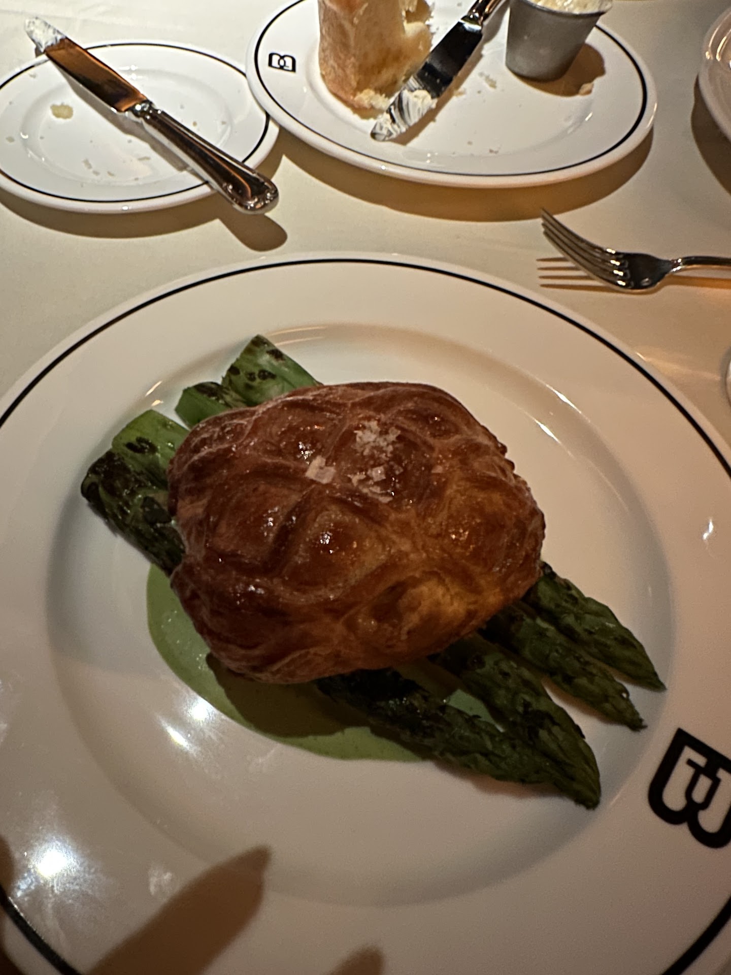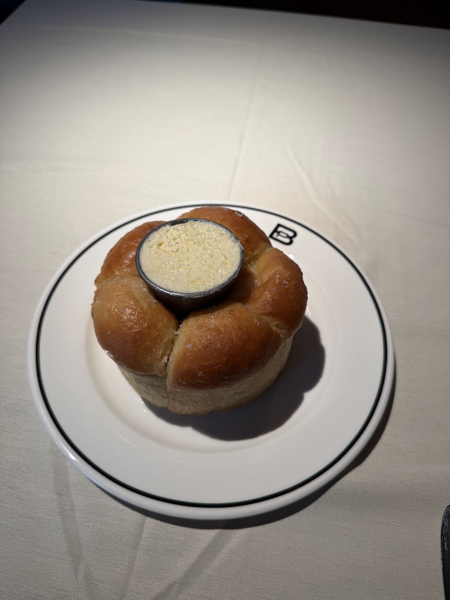 Atmosphere was elegant, with low lighting and a medium sized dining room area. Gave me the feel of a very fine steakhouse but was not overwhelmingly large, either, which I liked. And I must mention the decor, as there are some very cool items on display on the walls. Some older pieces of Purdue memorabilia adorn spots on the side wall, appropriately enough since this new treasure of a steakhouse sits in the heart of Boilermaker country!