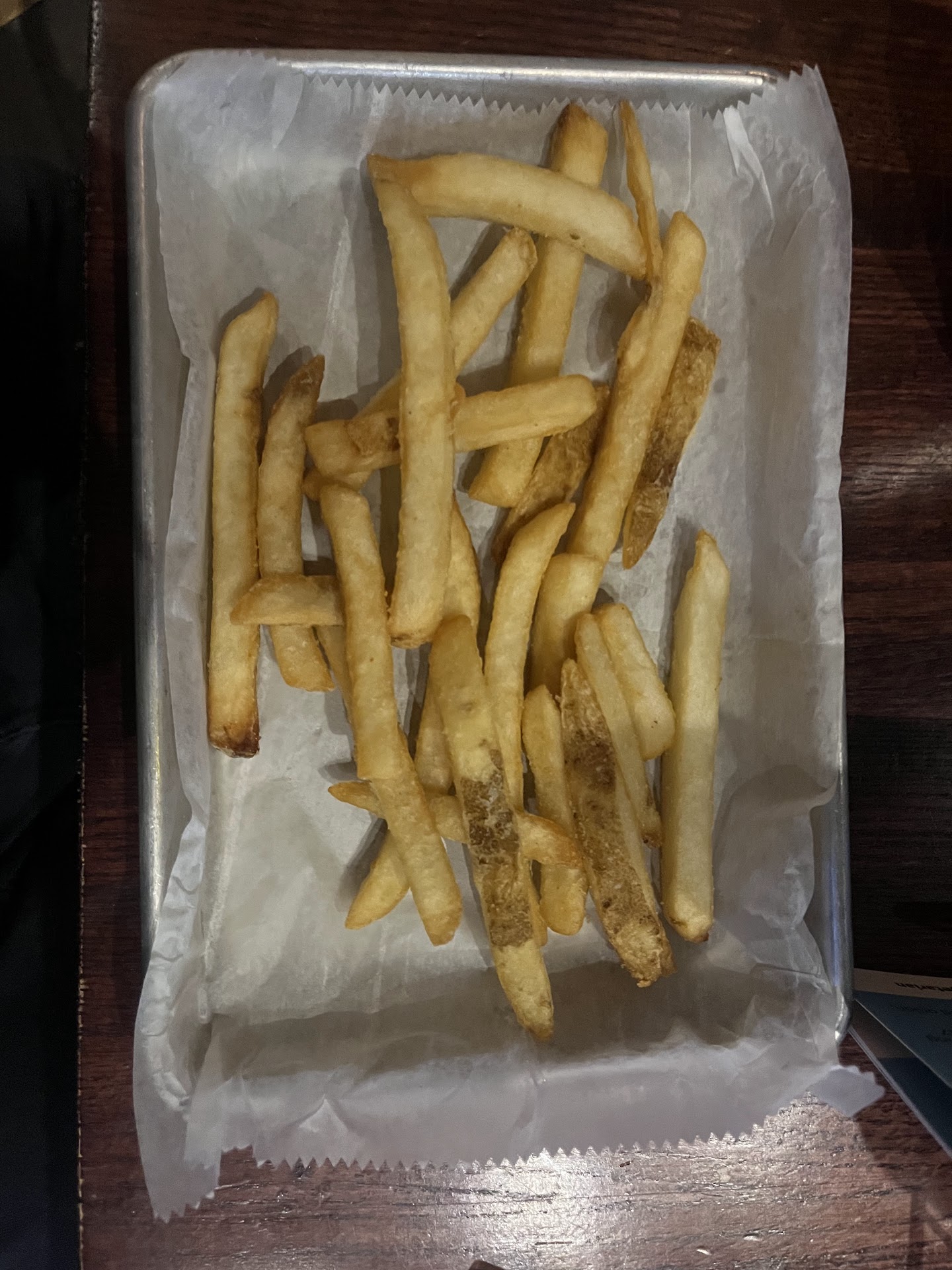 When we sat down, we asked about the miller lite game day deals and our server said we could get a mini pitcher for $5. 5 minutes had passed and he said the drinks were still on the way. 10 minutes later he came back and said they didn't have the pitcher deal for miller lite. Whatever, we asked about the coors light pitcher deal which was posted on the specials poster behind us and the waiter said he didn't know anything about it. We compromised for a miller lite (assuming we would get a draft). The waiter comes back with a bottle of miller lite. We also ordered a side of fries as one of us wasn't very hungry and it was the saddest looking side of fries ever (see picture). The southwest chicken wrap was ok but nothing special. The waiter didn't even bother to ask if we wanted to split the check.