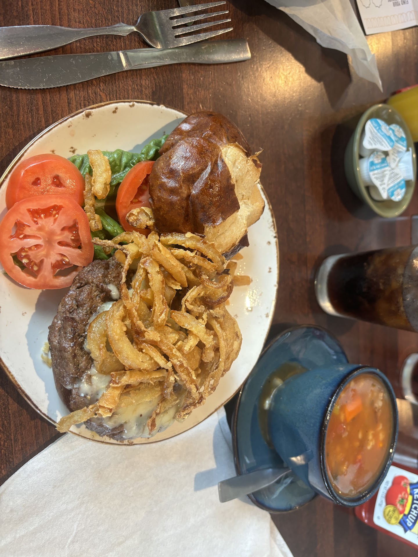 Read moreVisited Saturday early evening before 'the rush'. This place for a couple years was always busy when we wanted to visit so this was our first, seemed very quiet at 5:30pm which seemed unusual but filled an hour later but no real waiting line. Wide variety of sandwiches, some seafood, pasta, breakfast foods but sparse on wine/beer. This seems to be a local family restaurant, was expecting more campus visitors. Waitress was really 'perky' throughout and good eye contact (which is lacking at most restaurants) but as usual a curt rushed 'bye' as the $ was picked up. So a 9/10 on the service, not 10. As for the food - it was ok but not the best we've ever had. Fish tacos - too spicy. Hamburger - ok but not gourmet. pulled pork sandwich resembled brisket from my view, and patron said it seemed like it was 'fresh frozen' not scratch cooked. Liver 2 pieces one was okay the other overcooked/dry. Onions undercooked, zero flavor. Came on a plate with a lot of liquid/juice so maybe trying to keep it moist, but that's the first restaurant that tried to turn liver into a swimmer. Had a side salad which was more volume and romaine not iceberg lettuce so good. Well, we would visit again because the place is a little different and the service staff seemed better than normal but not a place to impress a date. My guess is the food is good but not great. I do like that most of the seating are booths. I have some negative comments about the men's bathroom as to planning and equipment that bugged me (I shouldn't leave feeling less clean than I went in) so this area just had little thought as to cleanliness of surfaces, splashy equipment. In other words, opportunity for a lot of germs. But hey, a lot of people wouldn't care about that kind of stuff but this was just sub par in my book. I normally don't mention this aspect in reviews but it...