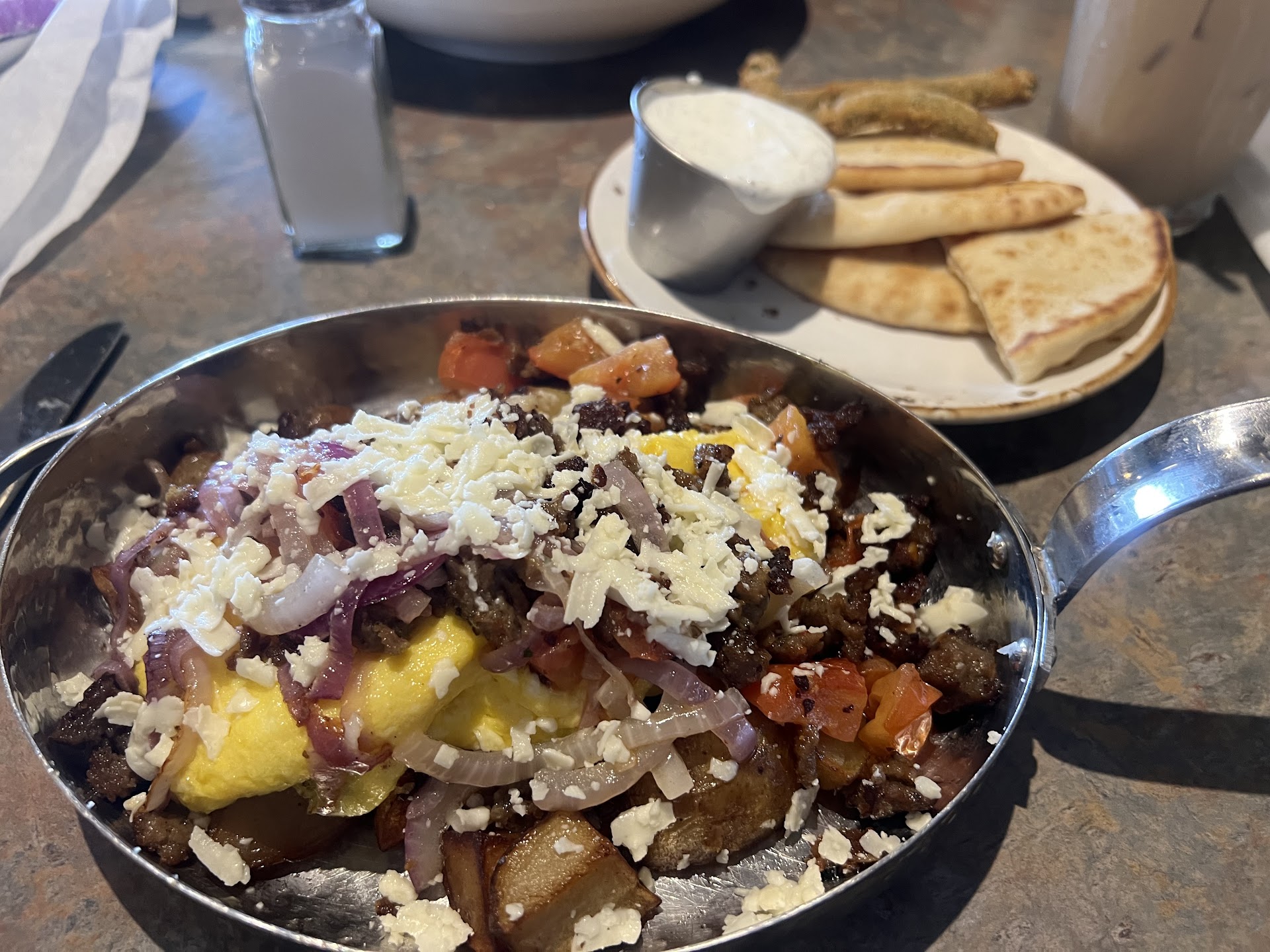 Apart from the diverse, AMAZING food, and the cozy and cool sort of Greek-American aesthetic of the place, I have never once encountered any bad service here. Even when the place is packed (rightfully so) I am served pretty quickly and the food never suffers. I have been working in food service since I was 15 and I've been everything from a dishwasher to a server to a line cook, and I know how chaotic it can be. I also cannot eat red meat, and I often feel annoying having to request no red meat on my food, but nobody here makes me feel like a burden for asking like some other places do.