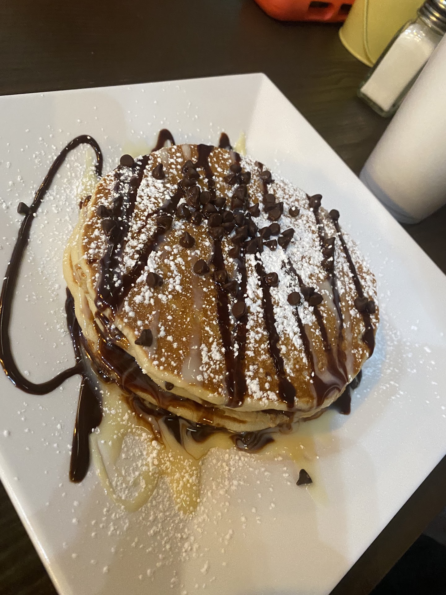 Read moreFirst off, this place is gorgeous. So aesthetically pleasing. So clean!! Such a cute photo op spot. The waiters were so polite and clean cut and looked very nice. The tables are a bit hard to sit at as a very tall person, my knees were ramming the bars under them. Also there was a bit of a gas smell in the place. Like maybe a burner in the back was on and leaking gas. The food was ok. The pancakes were good. The biscuits and gravy were very bland and biscuits were hard. The tres leches pancakes looked exactly like the picture on the menu and the kiddos liked them. We definitely want to come back to try...