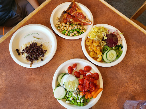 The space has a huge seating area and offers plenty of vegetarian options. You can find cheese pizza, or even make your own grilled panini (I built mine with sourdough, cheese, grilled onions, jalapeños, a touch of salt, and oregano—heated perfectly at 420° for about 2 minutes. It turned out amazing!).