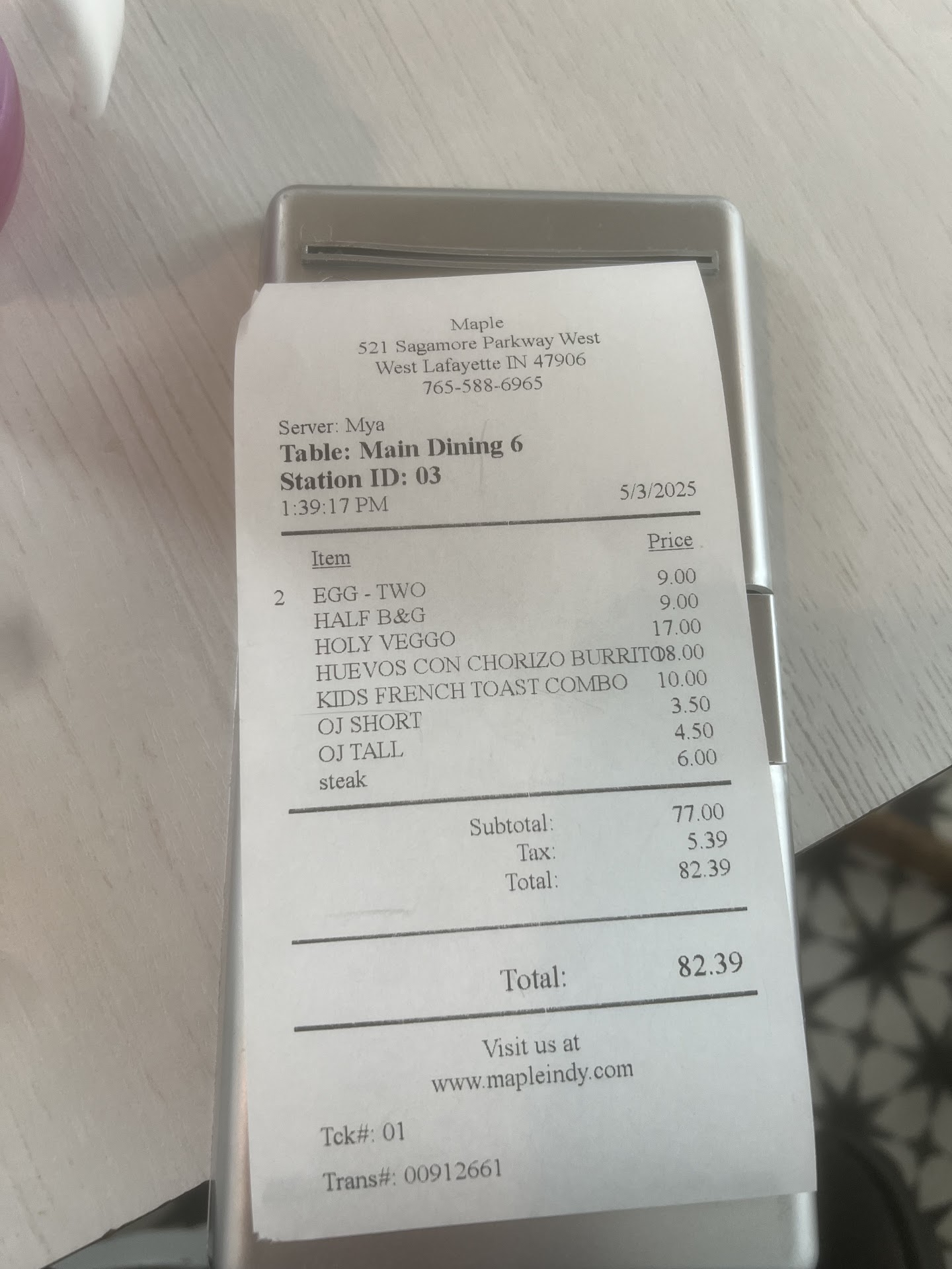 Like I said, when our food came out it was hot and tasted fine honestly. But the syrup container that was brought for me was absolutely covered in syrup, to the point I had to put a napkin over the handle to pour it or else I’d have a hand full of syrup. It’s gross. It takes nothing to wipe off the handles and top of these syrup containers when you bus tables. Again, really basic stuff.