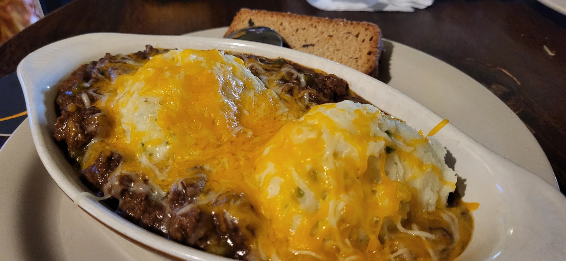 Son and I both chose full orders of the Guiness Stew ($12.99). It was a decent-sized boat filled with beef stew and 2 scoops of mashed potatoes. While I did notice some potatoes in the stew as well, I could have gone for more carrots and onions to complement the generous amount of beef that permeated throughout the bowl. Only other change I might have liked would have been replacing one of the mashed scoops with a sweet potato mashed scoop as I recently had enjoyed in Ireland.