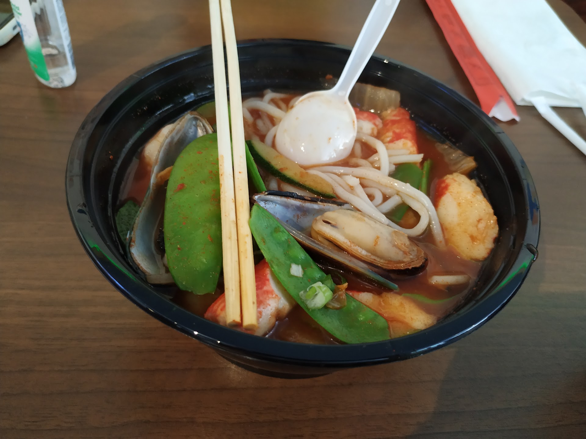 Bummer the duck noodles was inedible, possibly the worst food I ever eaten. Neither my friend nor I could stomach it at all, which is a real bummer because their pad Thai is fantastic! Tidy corner bin turned cute Korean and Japanese good food stop, I can highly recommend especially after my friends already had told me they had great meals here. I picked the Monday dinner destination with them and found a clean, well managed, fast serving, and polite setup. Noticed electronic stations for quick self picks and takeout, many others turned out to get their orders and run off, has to be a solid choice for Asian cuisine when we white boys are the minority! Menu wasn't too odd for he translations, wished they had portion sizes or calories to help me decide on what is right for my appetite. The two others went basic, fried noodles, ramen, and I had to get pad Thai with shrimp. Really like their self serve water infused with lime, extra special touch and I say that should be a common sip drip everywhere! So refreshing! Our entrees appeared, plates well covered and piled up, we all had a good time. Balanced spices and noodles done right across all three, surprising for me was a decent shrimp amount unlike most seafood options that are more skimpy than scampi. Pad Thai is the perfect cold spring day food, will get it again and need to try more...