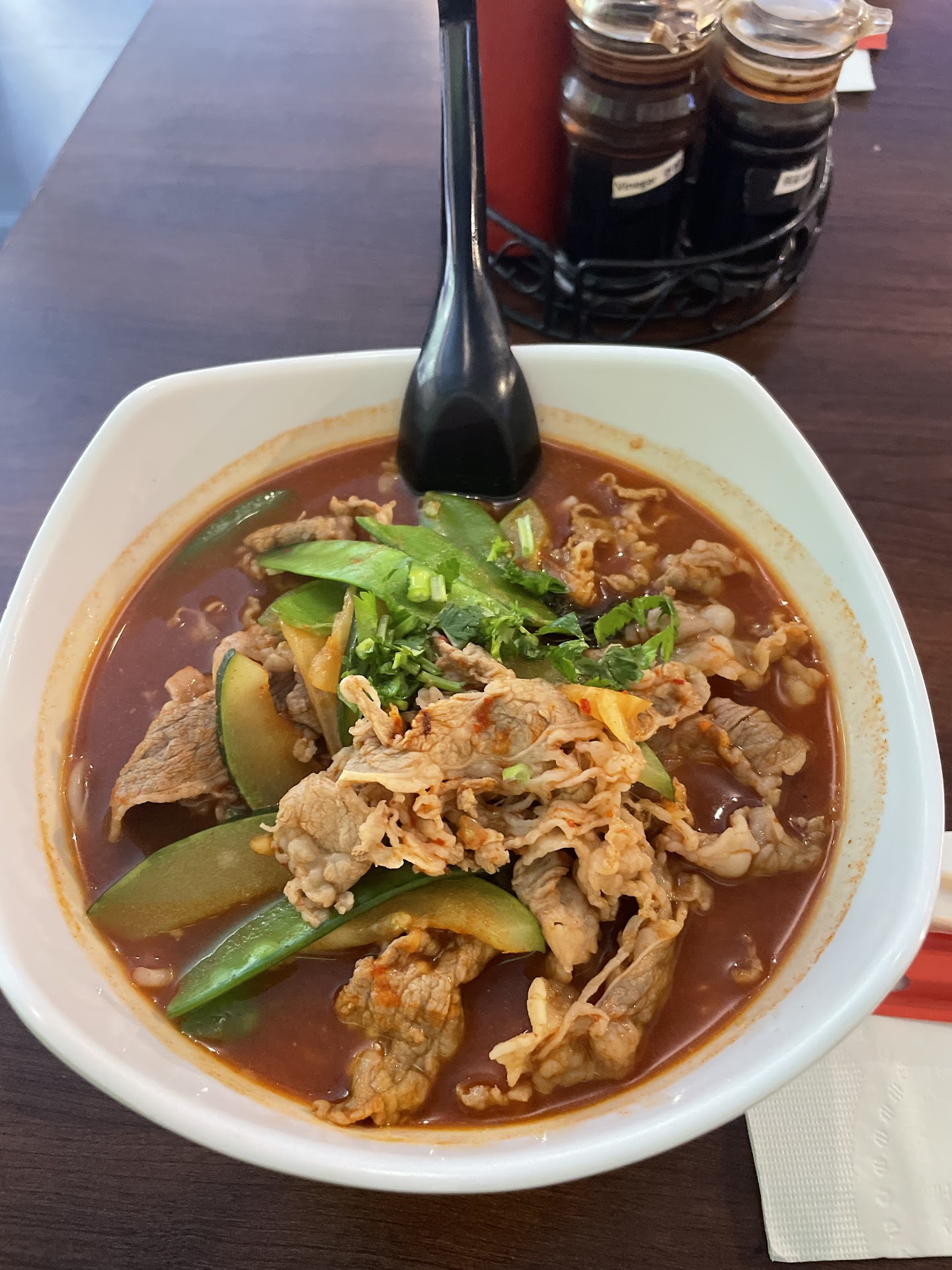 Read moreFood is mediocre at best, and very overpriced considering the portion and taste. Ordered many times because of how close it is to campus, but did not end up liking anything except for rogamo with chili, which is very pricy. I’m not sure what’s off there, but noodles here generally have a floppy texture that is pretty stale. Soups are also blend in flavor. Once received a beef noodle soup and had to throw away half the beef because the tendons are impossible to chew with human jaw power. Even the house special noodle is not tasty :(. I was so happy when I ordered it, and equally disappointed when I taste it. My normal food choice is stir frying whatever I find edible in the fridge with whatever sauce I see on the counter. Can you imagine how sad it is when you try to treat yourself and the food you get from a restaurant tastes no better than your random stir fry with only soy sauce and garlic as the seasoning? If the taste and texture of noodle is improved, it would actually be a great spot as a lot of the cuisine they offer here is hard to find...